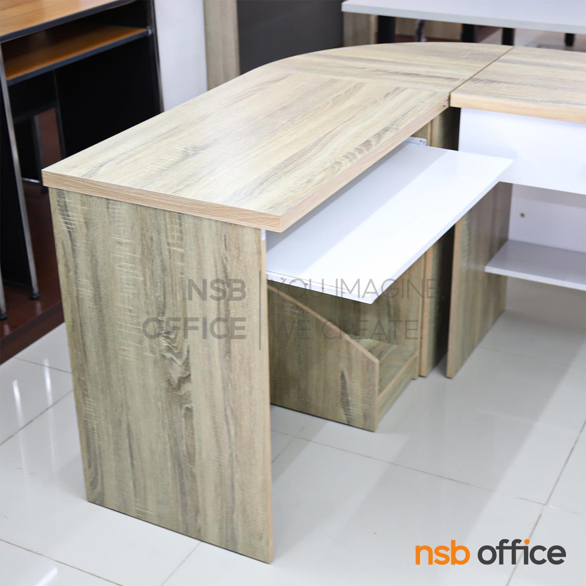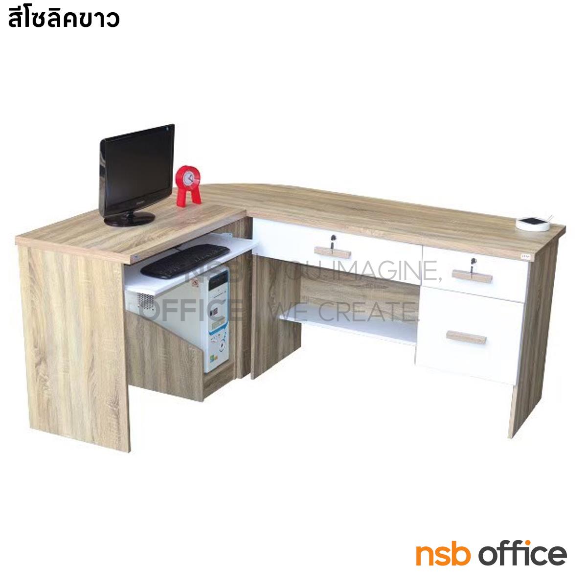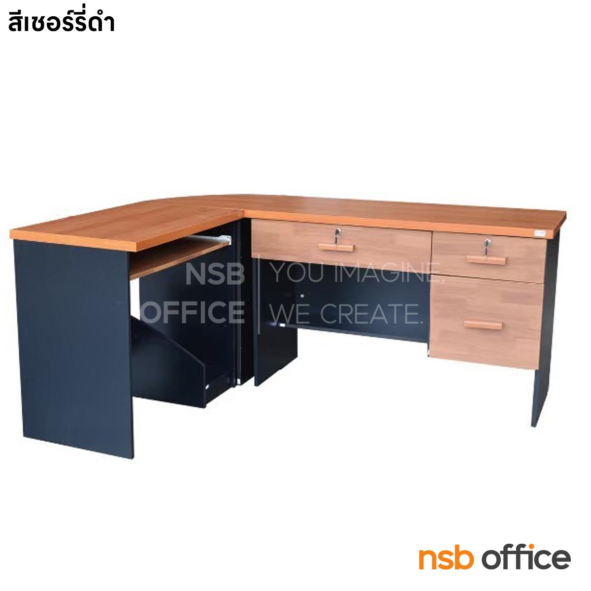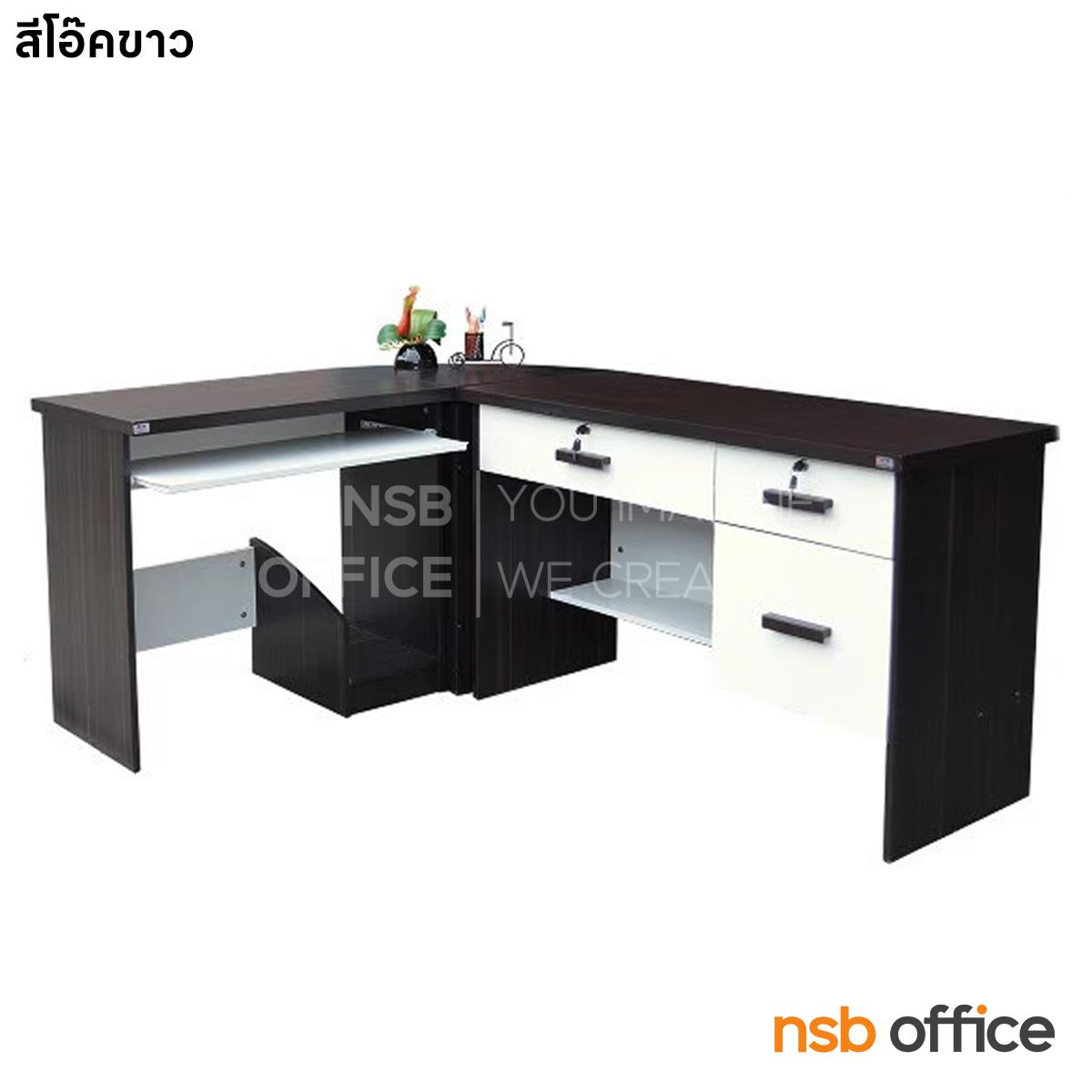 A01A018: โต๊ะทำงานตัวแอล ขนาด 170W*130D*75H cm. ผิวพีวีซี พร้อมรางคีย์บอร์ด