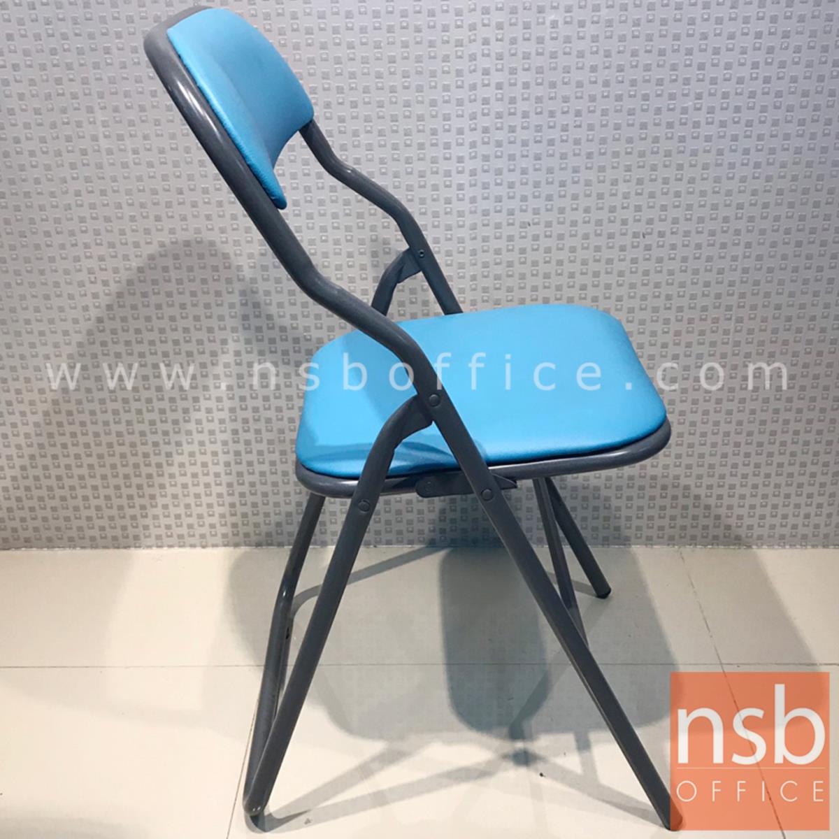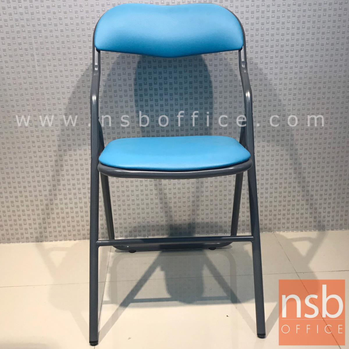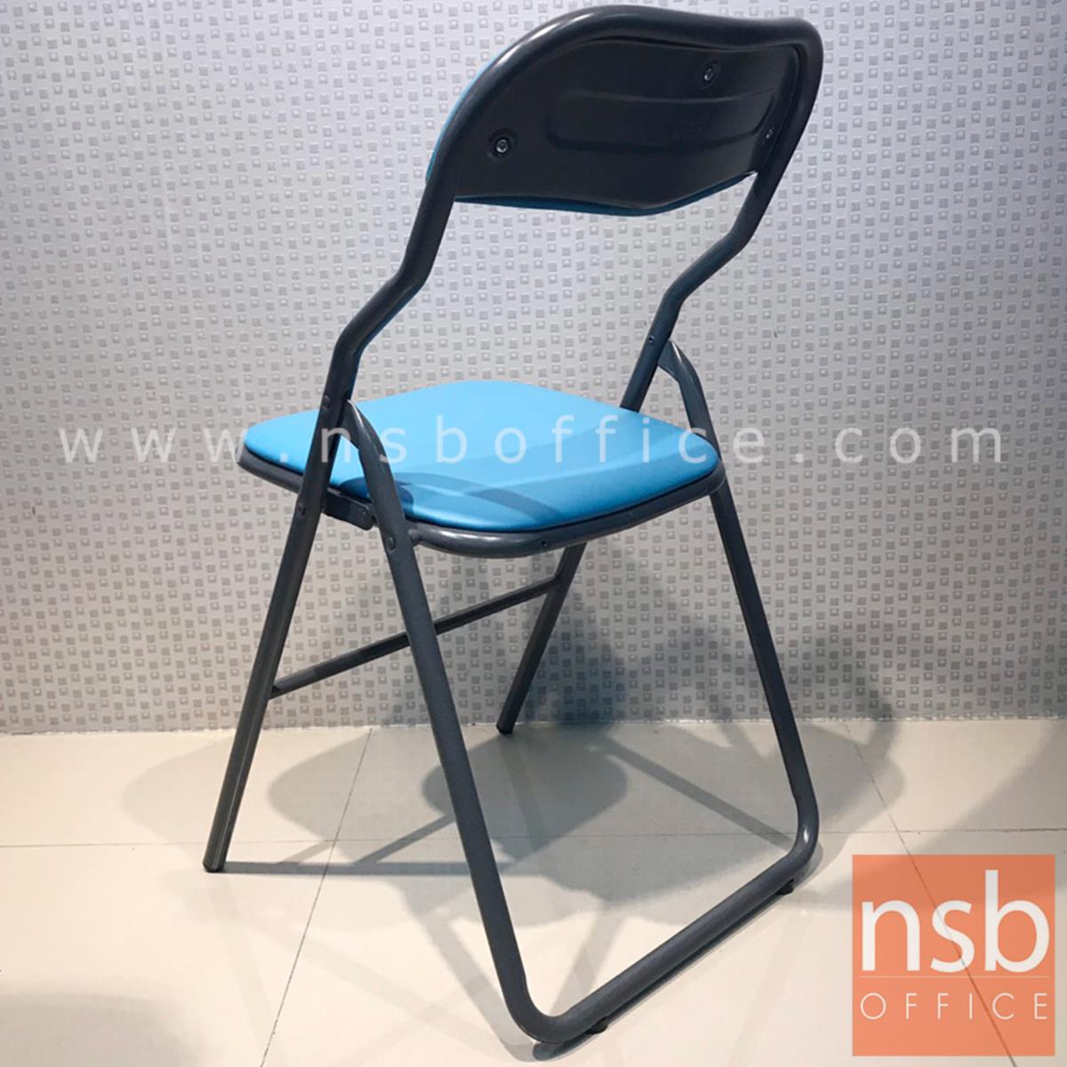 : เก้าอี้พับที่นั่งหุ้มเบาะหนัง รุ่น Luciana (ลูเซียน่า) ขาเหล็กพ่นสีดำ (เสริมแผ่นเหล็กใต้ที่นั่ง)