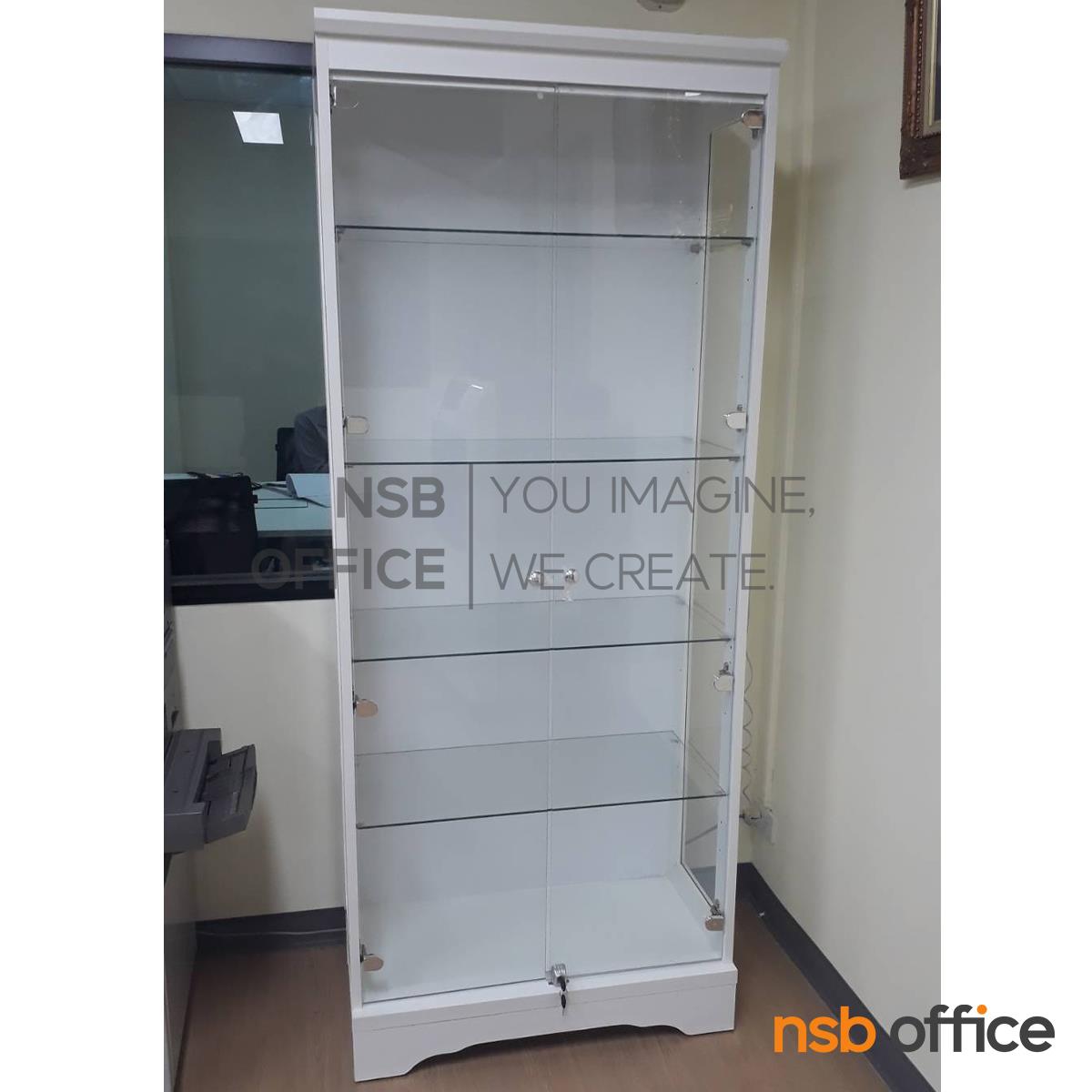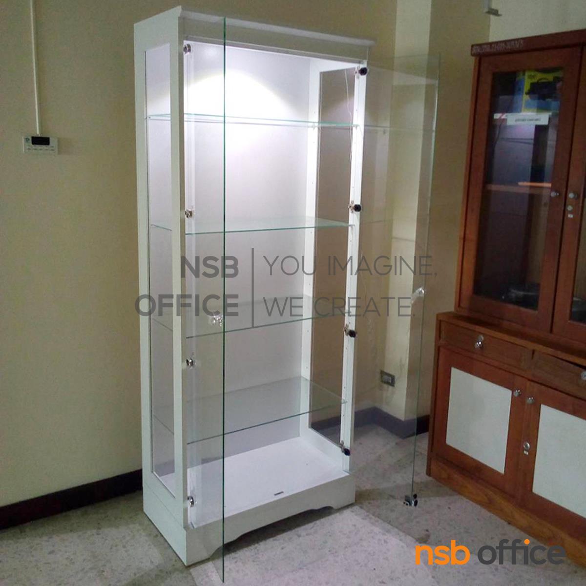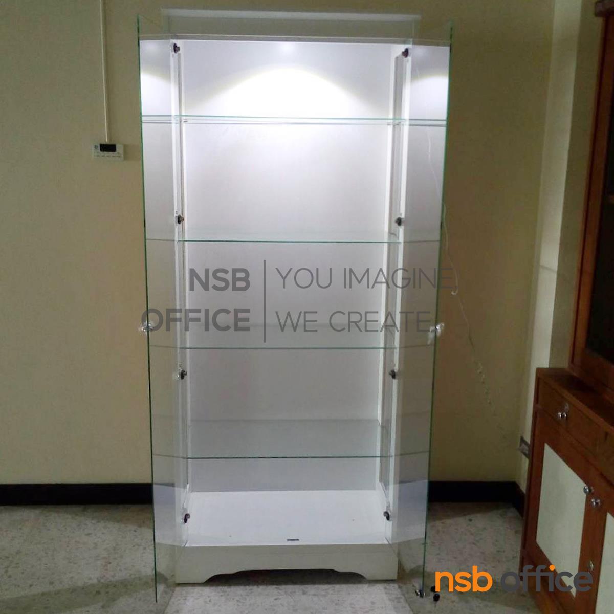 : ตู้โชว์กระจกดาวน์ไลท์ 2 บานเปิด สีขาว