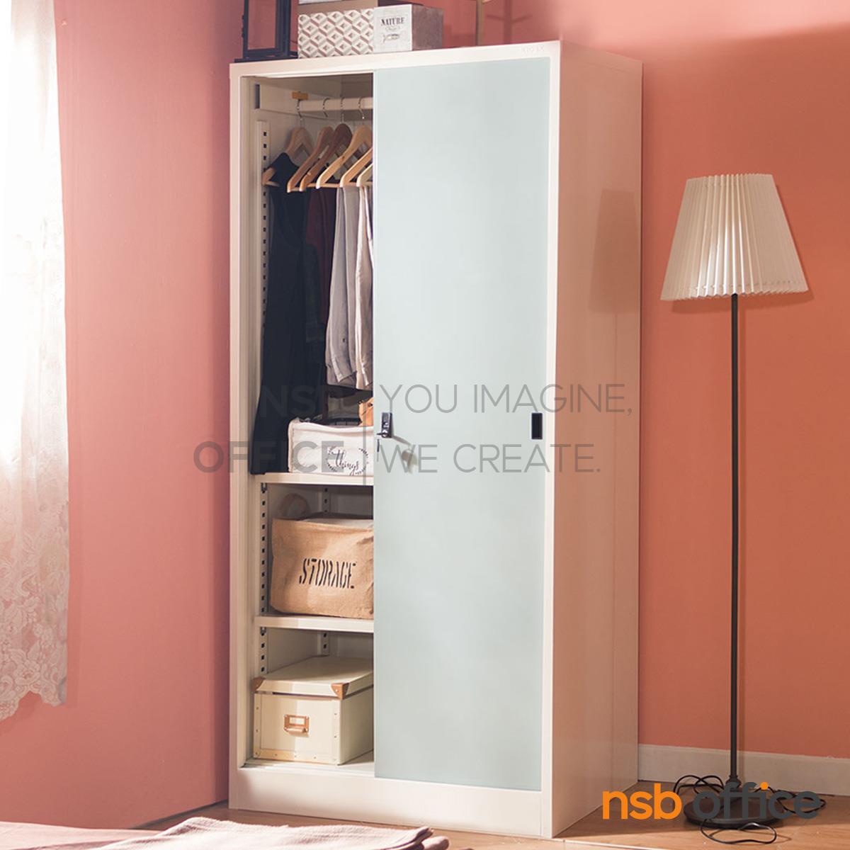 : ตู้เสื้อผ้าเหล็กลายกราฟฟิก บานเลื่อนทึบสูง 182H cm. รุ่น SDW-18