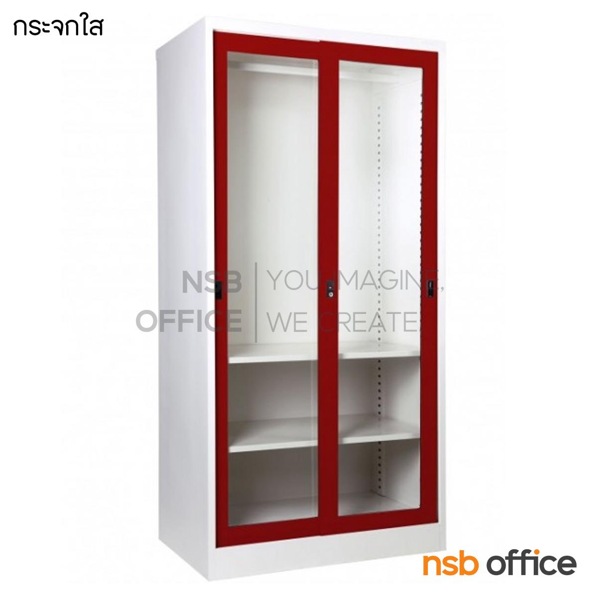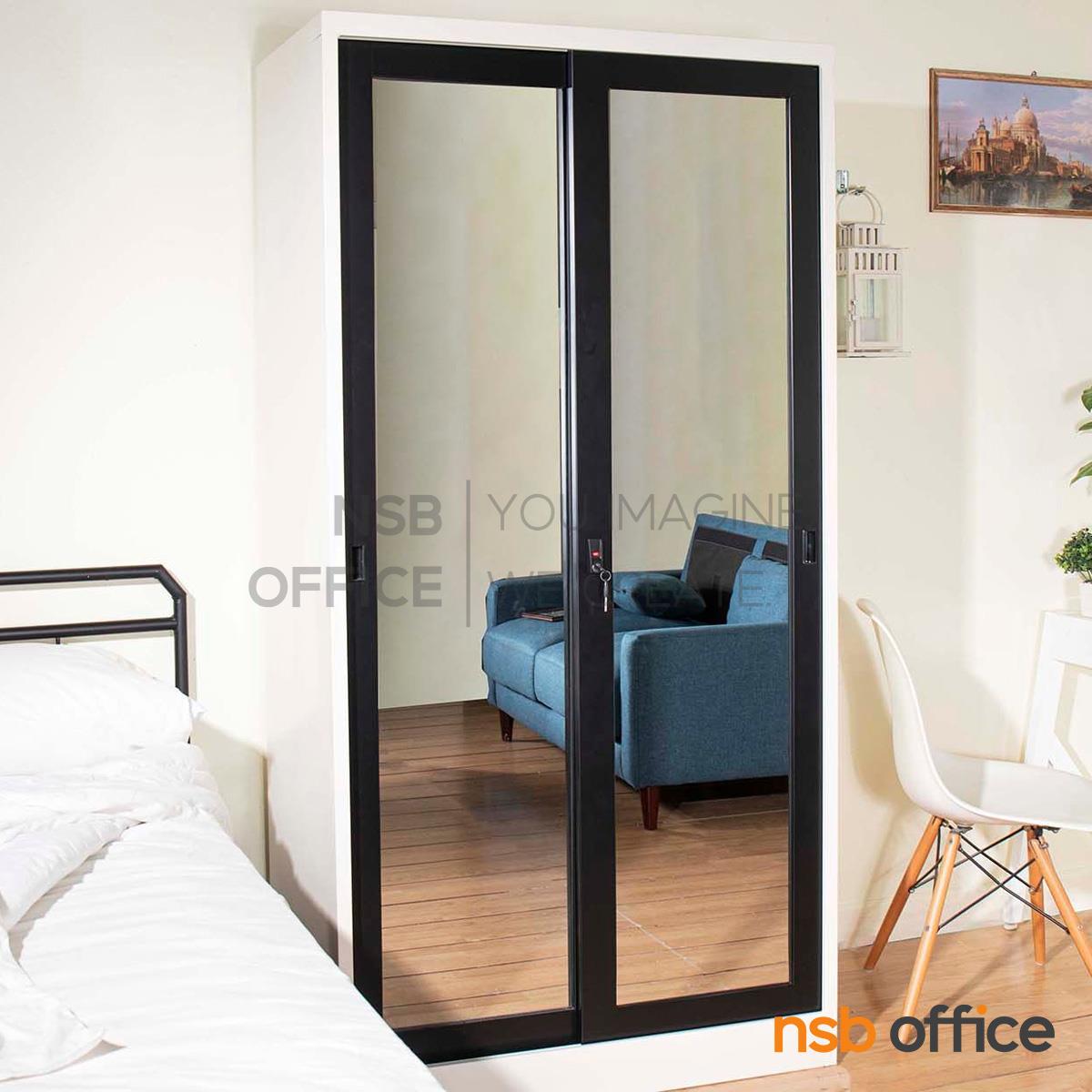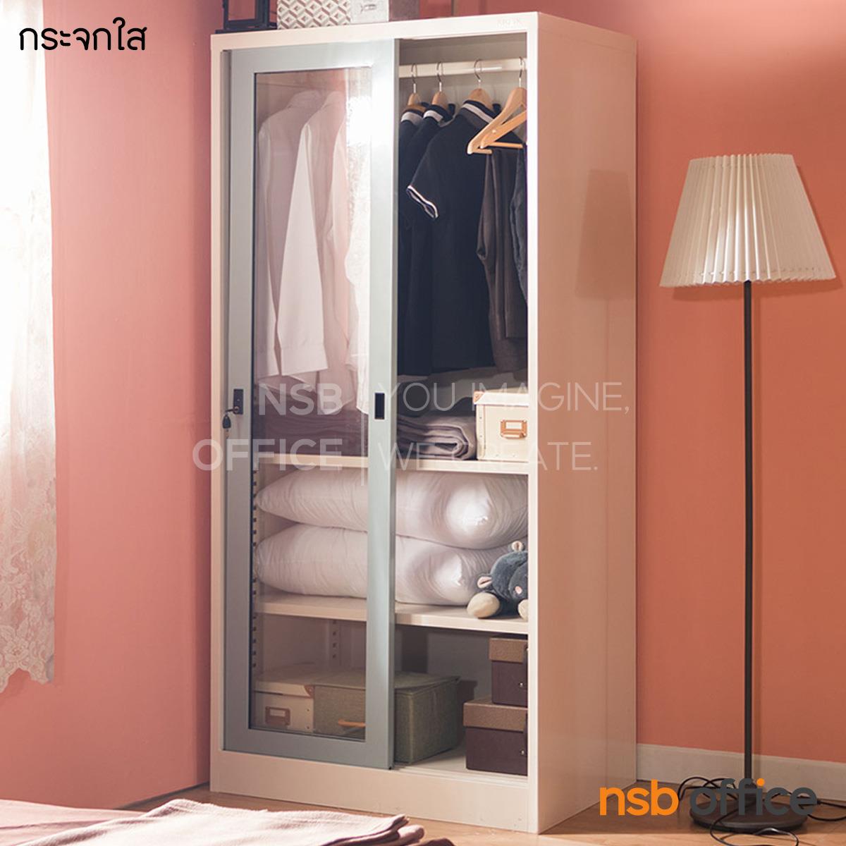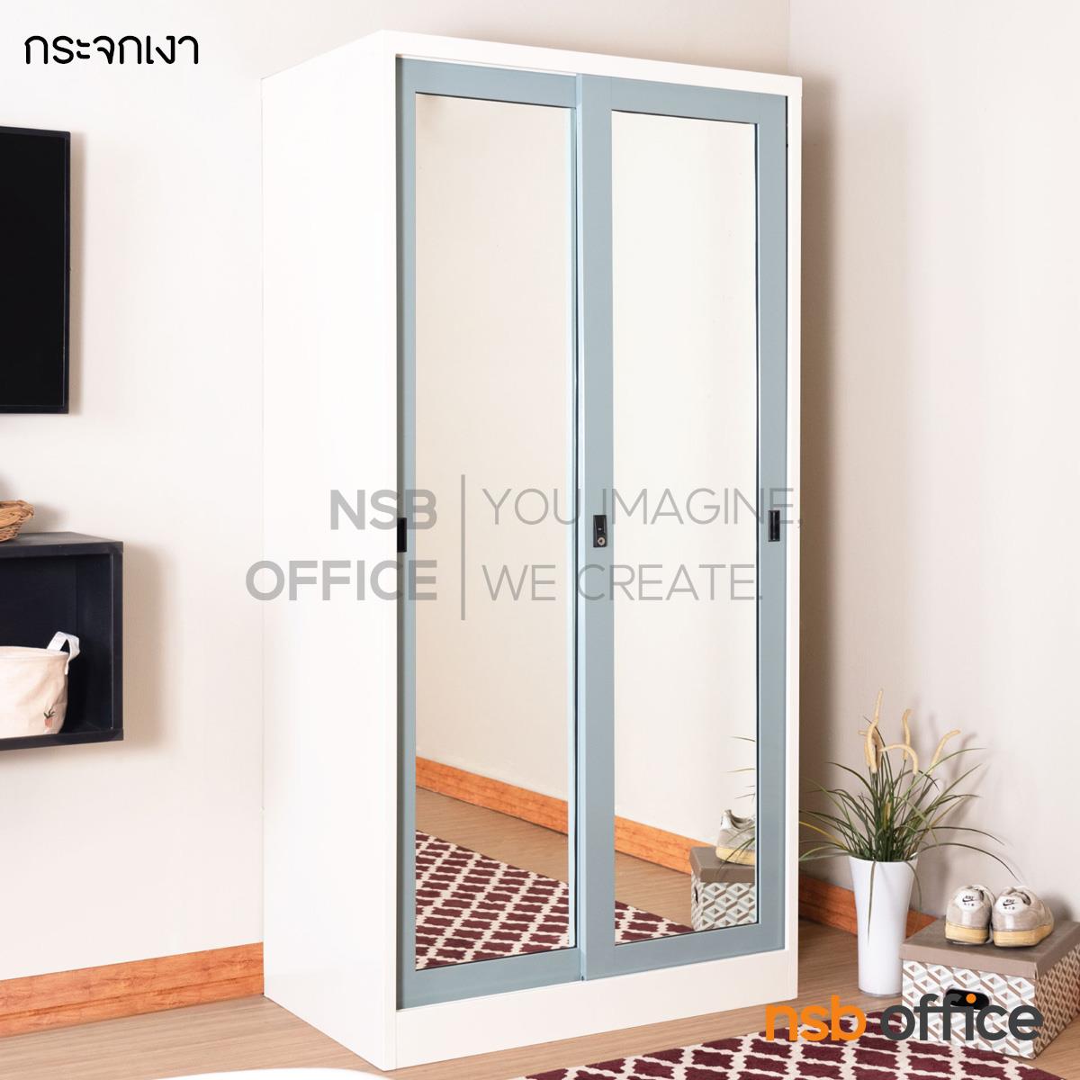 E23A002: ตู้เสื้อผ้าเหล็ก บานเลื่อนกระจกสูง 182H cm. รุ่น SGW-18 กุญล็อค