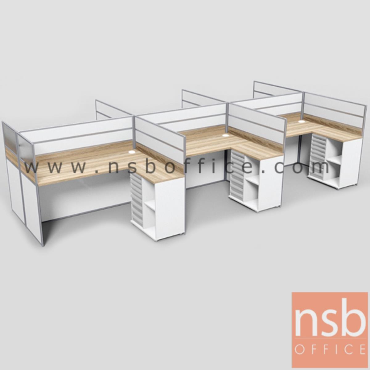: ชุดโต๊ะทำงานกลุ่มตัวแอล 6 ที่นั่ง รุ่น SR-L423 ขนาดรวม 458W1*242W2 cm. (ช่องโล่ง 9 ลิ้นชักแยกประเภท) พร้อมตู้ข้างเอกสาร