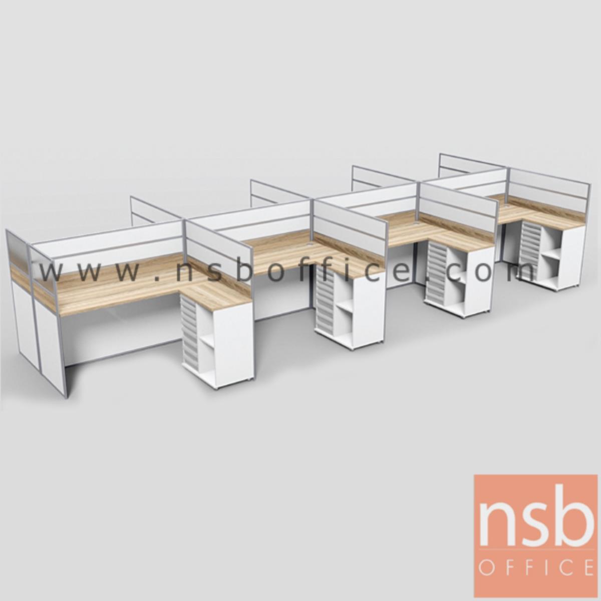 A04A190: ชุดโต๊ะทำงานกลุ่มตัวแอล 8 ที่นั่ง ขนาดรวม 610W1*242W2 cm. พร้อมตู้ข้างเอกสาร