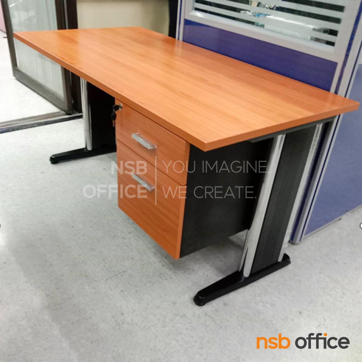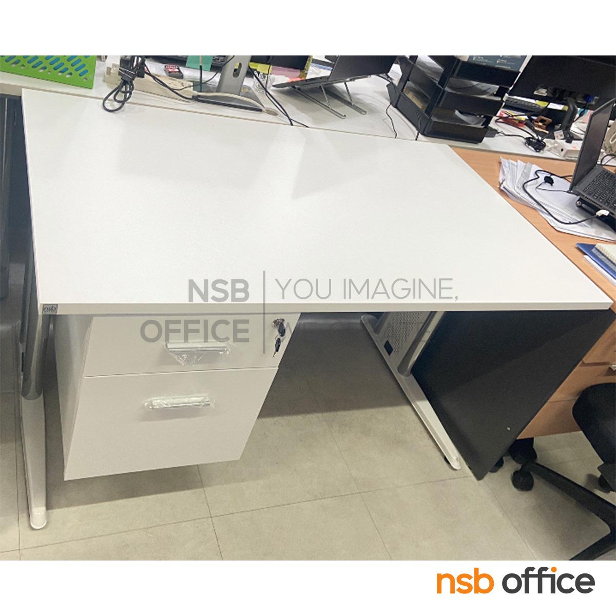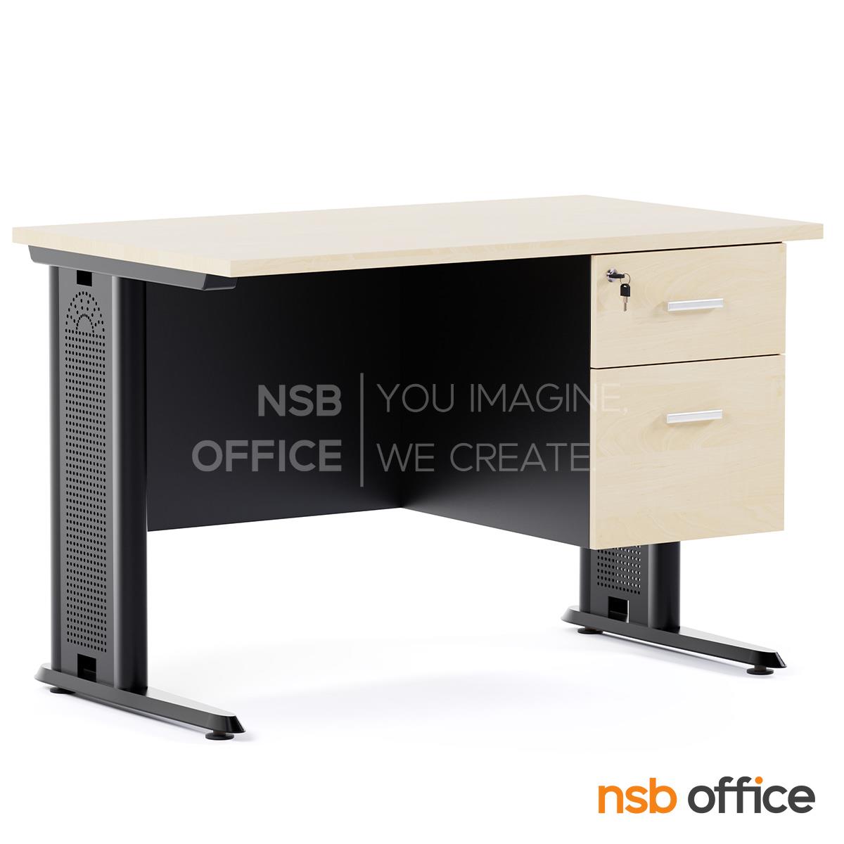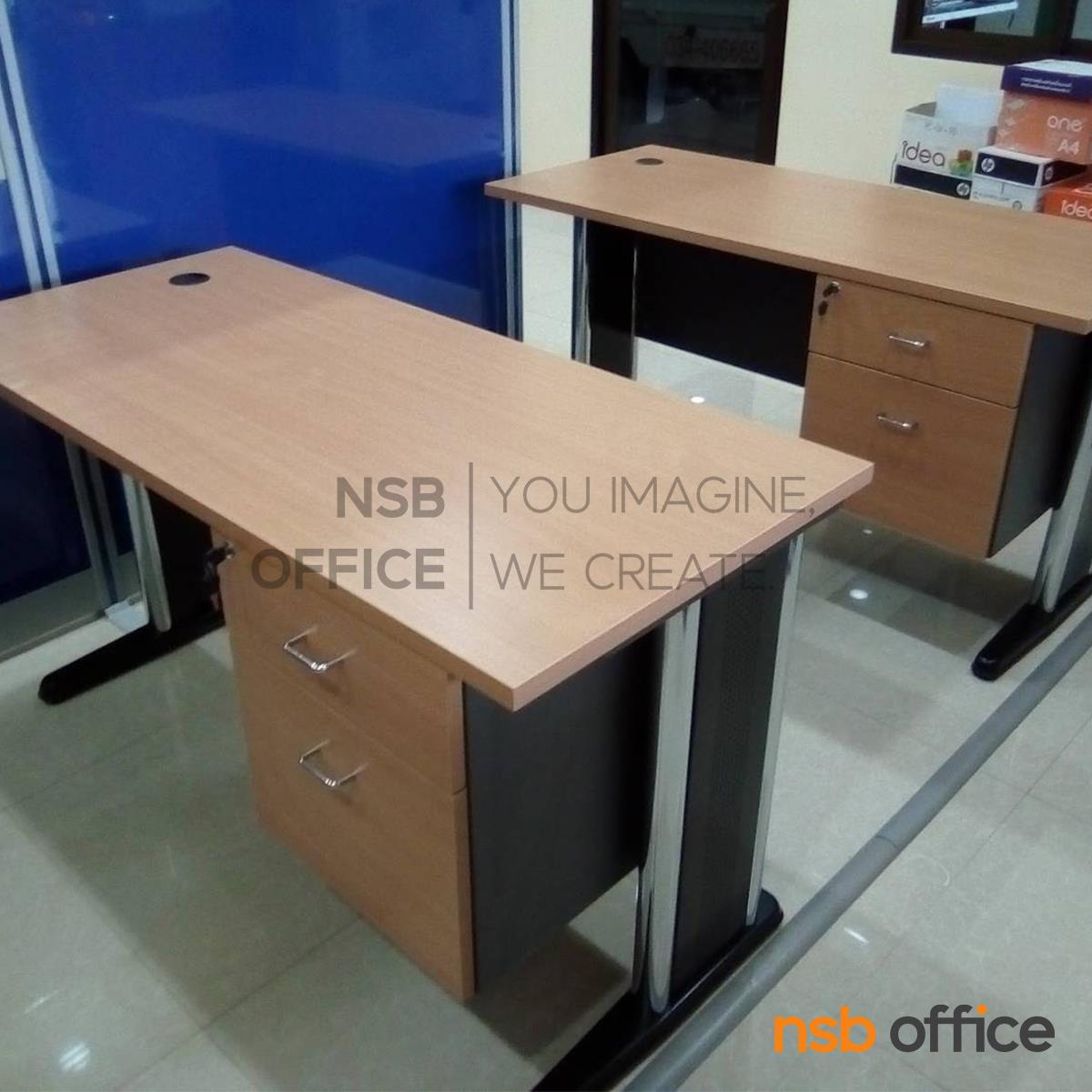 A10A037: โต๊ะทำงาน 2 ลิ้นชัก รุ่น Xynic (ไซนิค) 120W, 135W, 150W (75D, 80D) cm. บังตาไม้ ขาเหล็กตัวแอล