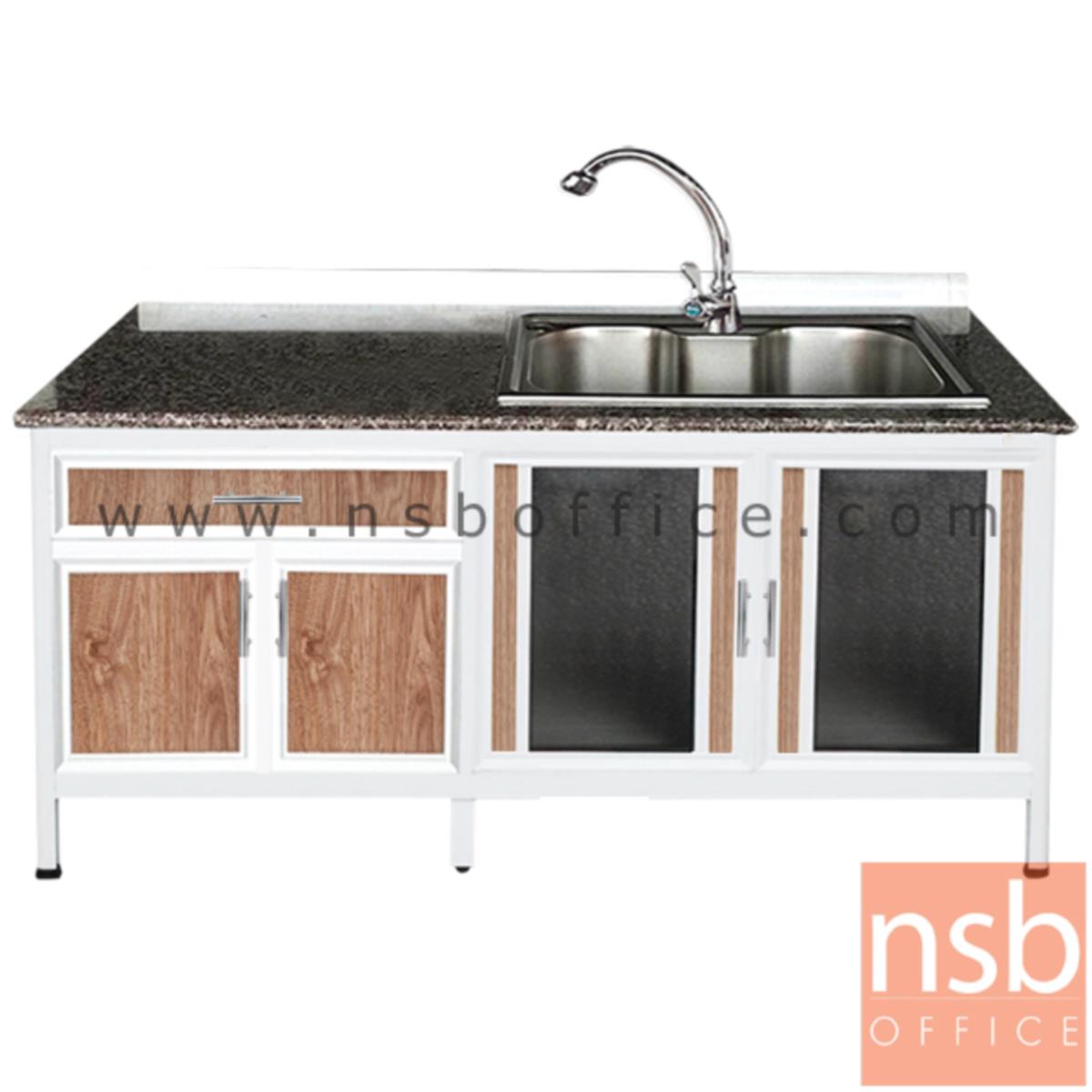 : ตู้ครัวตอนล่างอลูมิเนียมอ่างซิงค์ 1 หลุมลึก กว้าง 180 ซม (หน้าTOPหินแกรนิตเจียร์ขอบ)