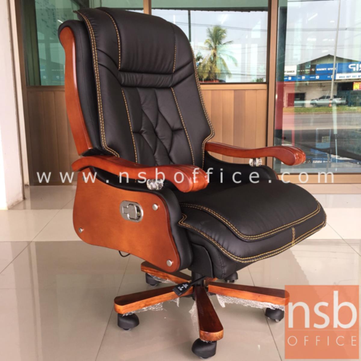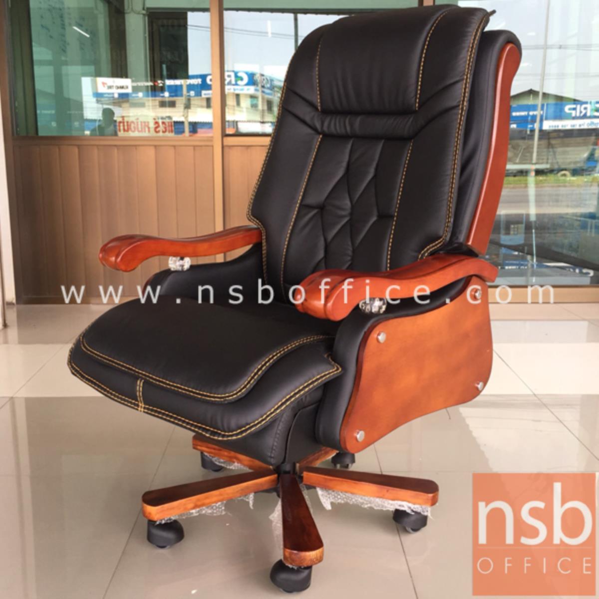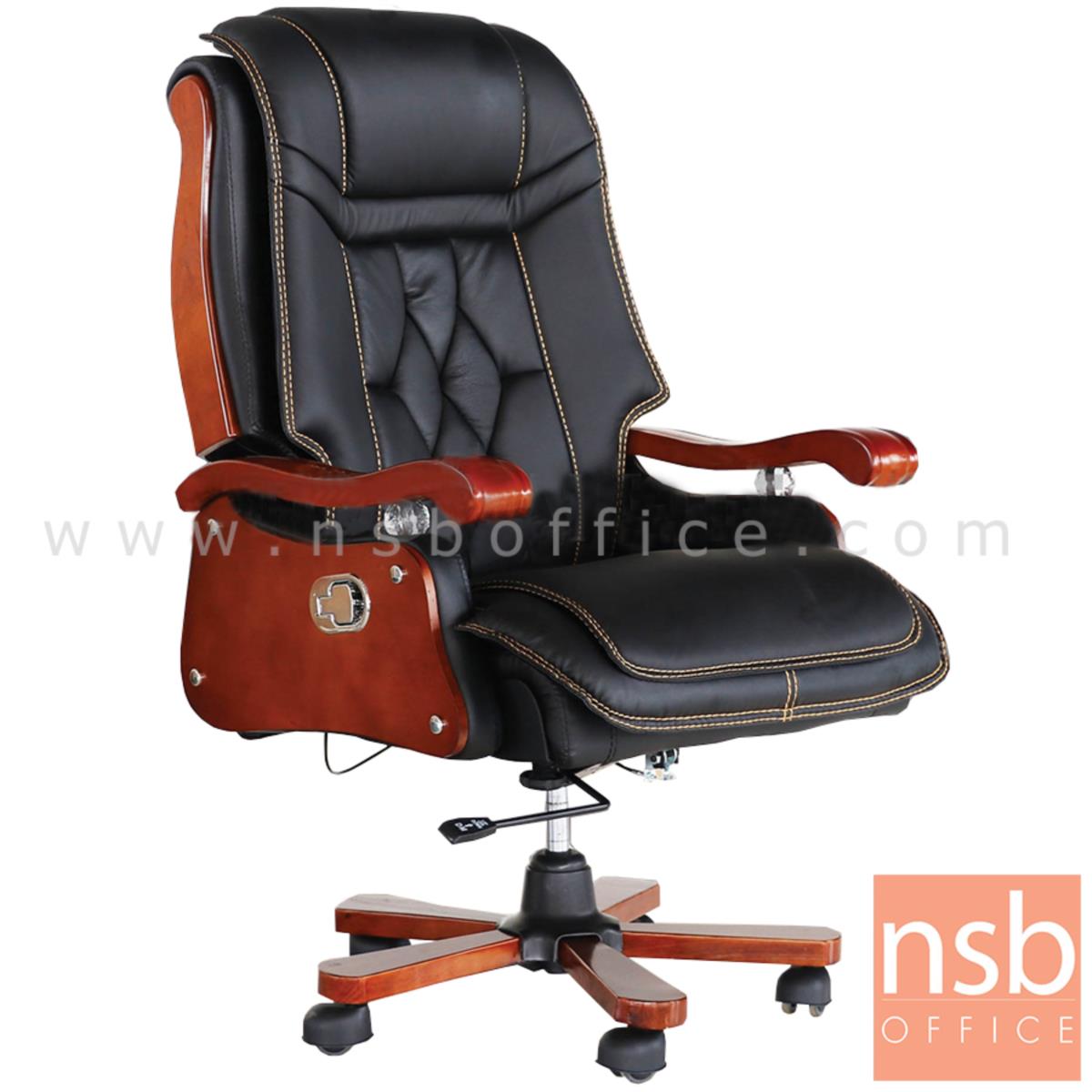 B25A106: เก้าอี้ผู้บริหารหนังแท้ (ยกเลิก 02.03.2565) รุ่น Shaw (ชอว์) โช๊คแก๊ส มีก้อนโยก ขาไม้