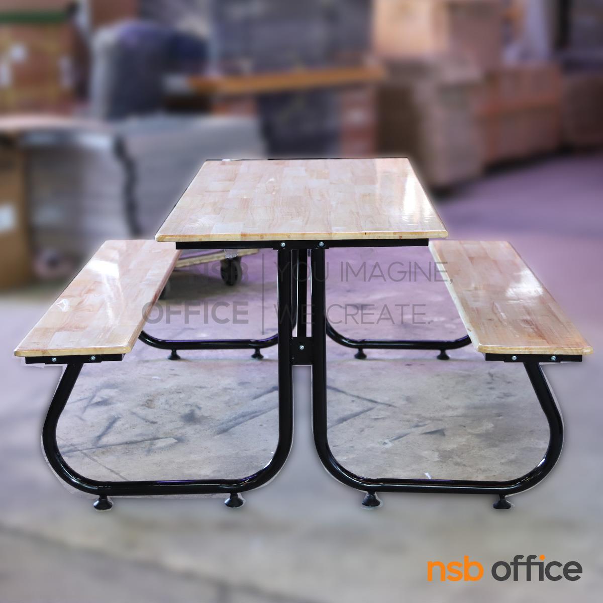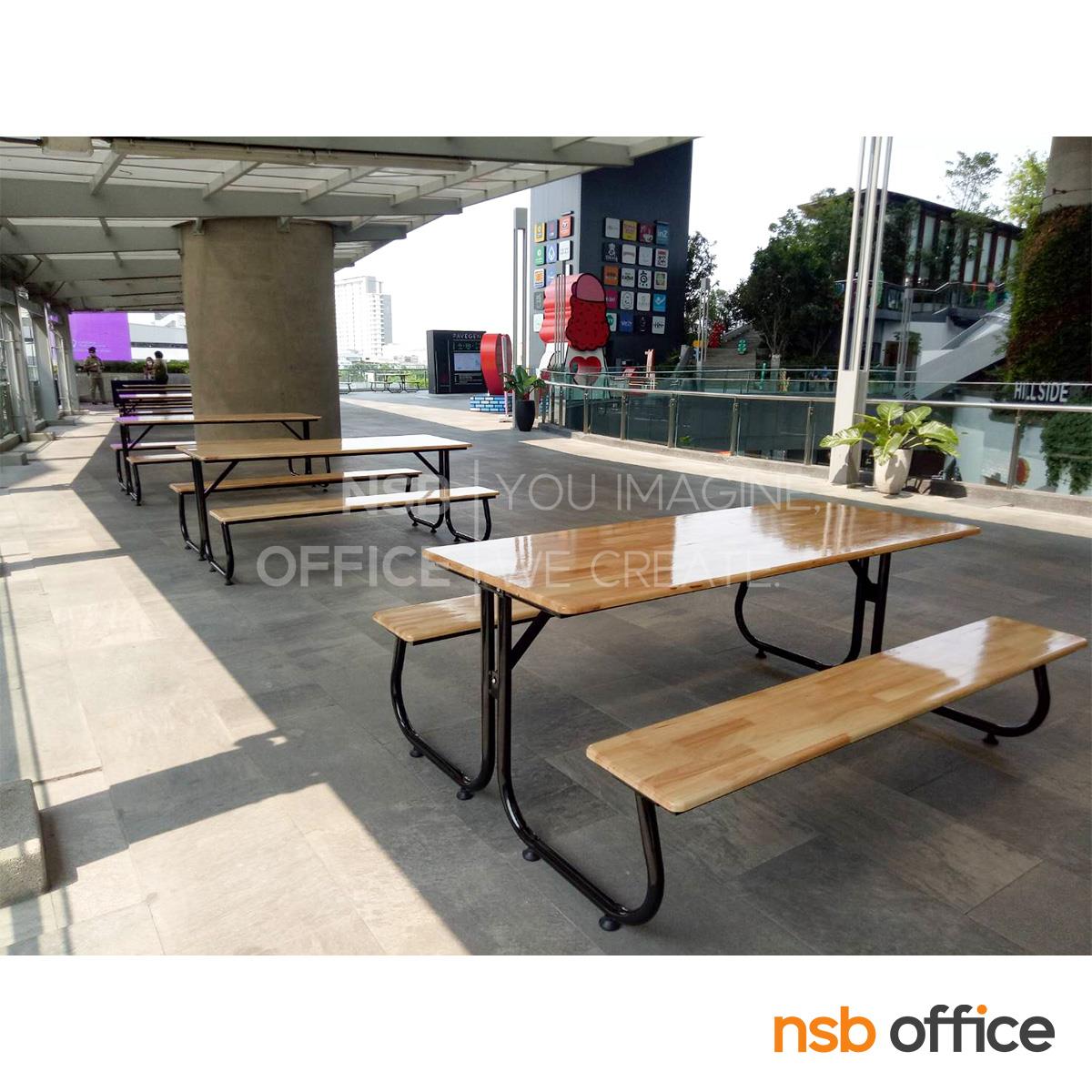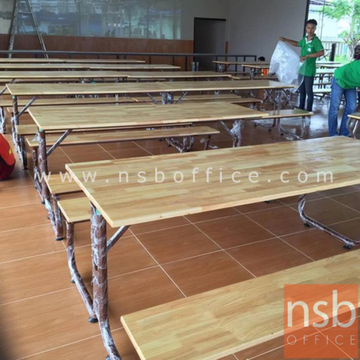 : ชุดโต๊ะและเก้าอี้โรงอาหารหน้าไม้ยางพารา รุ่น PM-5 ขนาด 150W cm. แบบขาเชื่อมติดกัน