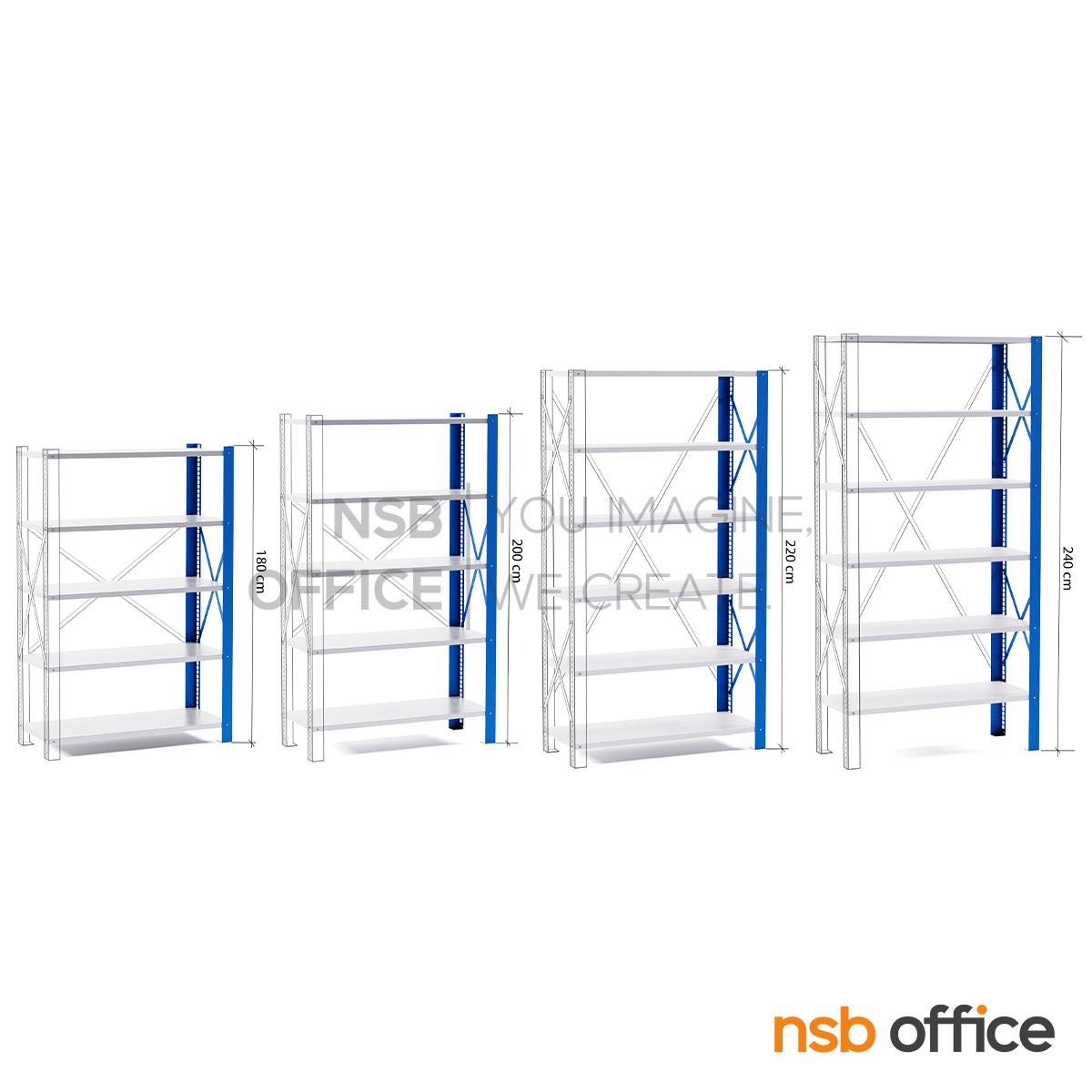 รับน้ำหนักได้ 150-200 KG ต่อชั้น / มีความสูง 4 ขนาดคือ 180, 200, 220 และ 240 ซม. / โครงเหล็กแข็งแรง เสาเหล็กหนา 2 มม. แผ่นชั้นเหล็กหนา1 มม./เสาสีน้ำเงิน แผ่นชั้นสีเทาอ่อน