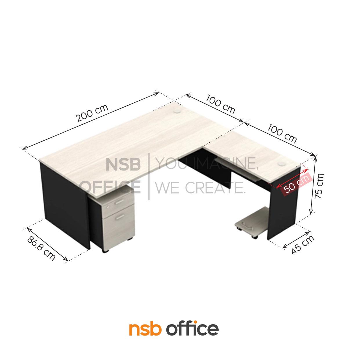 : โต๊ะผู้บริหารตัวแอล รุ่น Rebels (เรเบลส์) ขนาด 200W cm. (แอลขวา) พร้อมตู้ลิ้นชัก คีย์บอร์ดและที่วางซีพียู