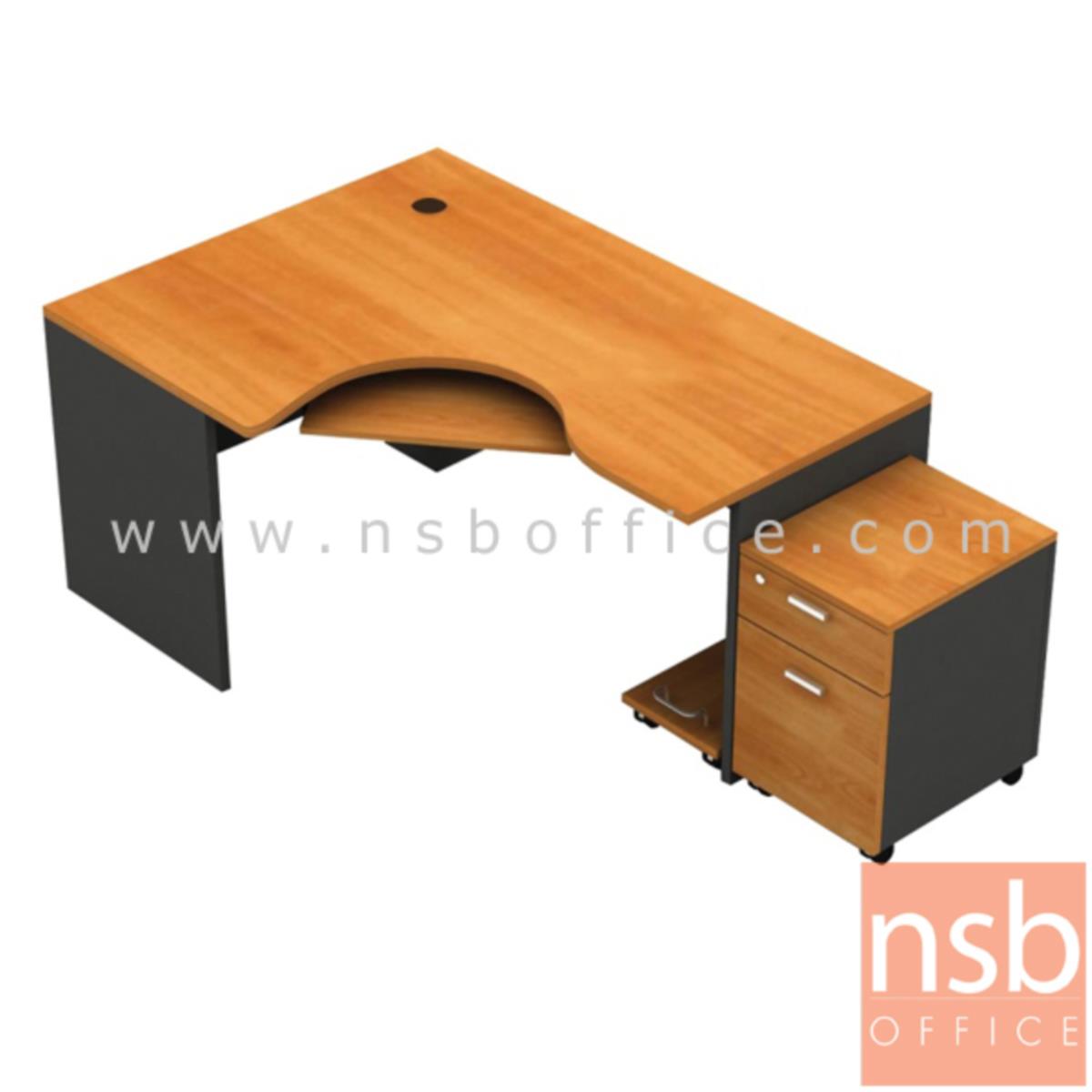 A13A003: โต๊ะผู้บริหารตัวแอลหน้าโค้งเว้า รุ่น Airiam (แอริซึ่ม) ขนาด 165W1*120W2 cm. พร้อมคีย์บอร์ด ที่วางซีพียู ตู้ลิ้นชักล้อเลื่อน