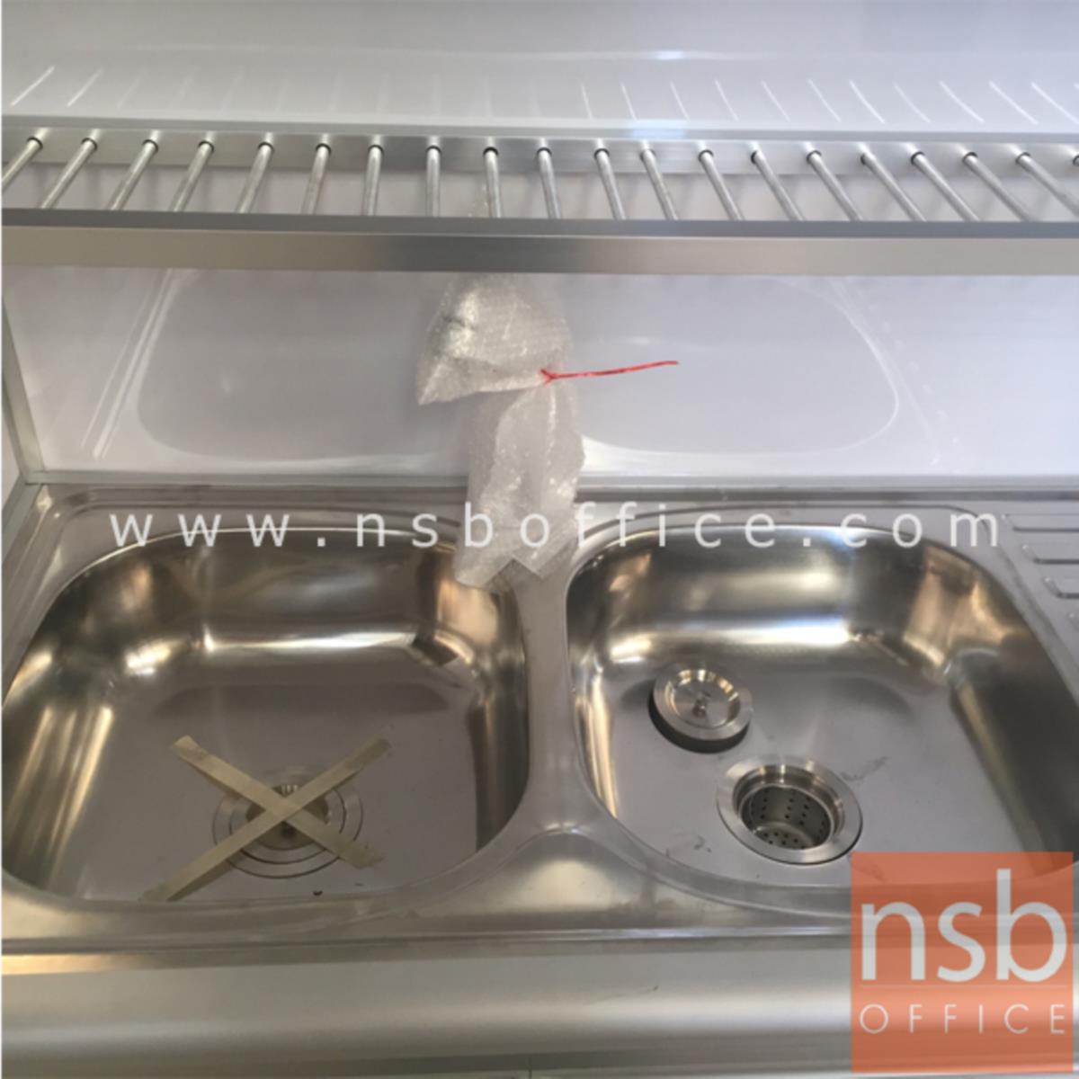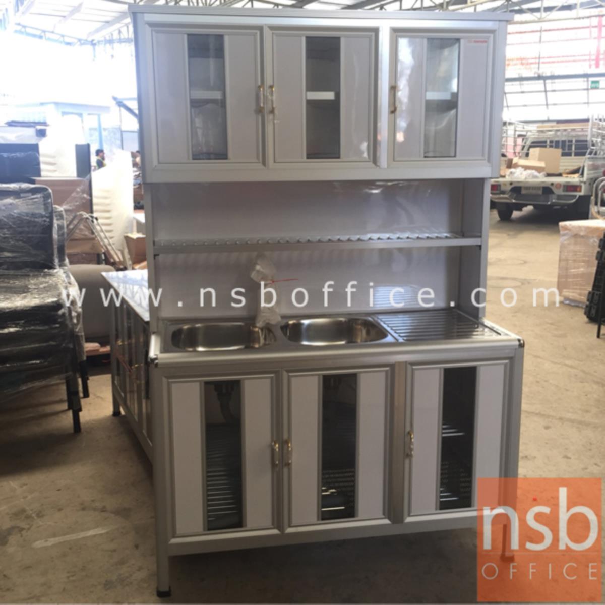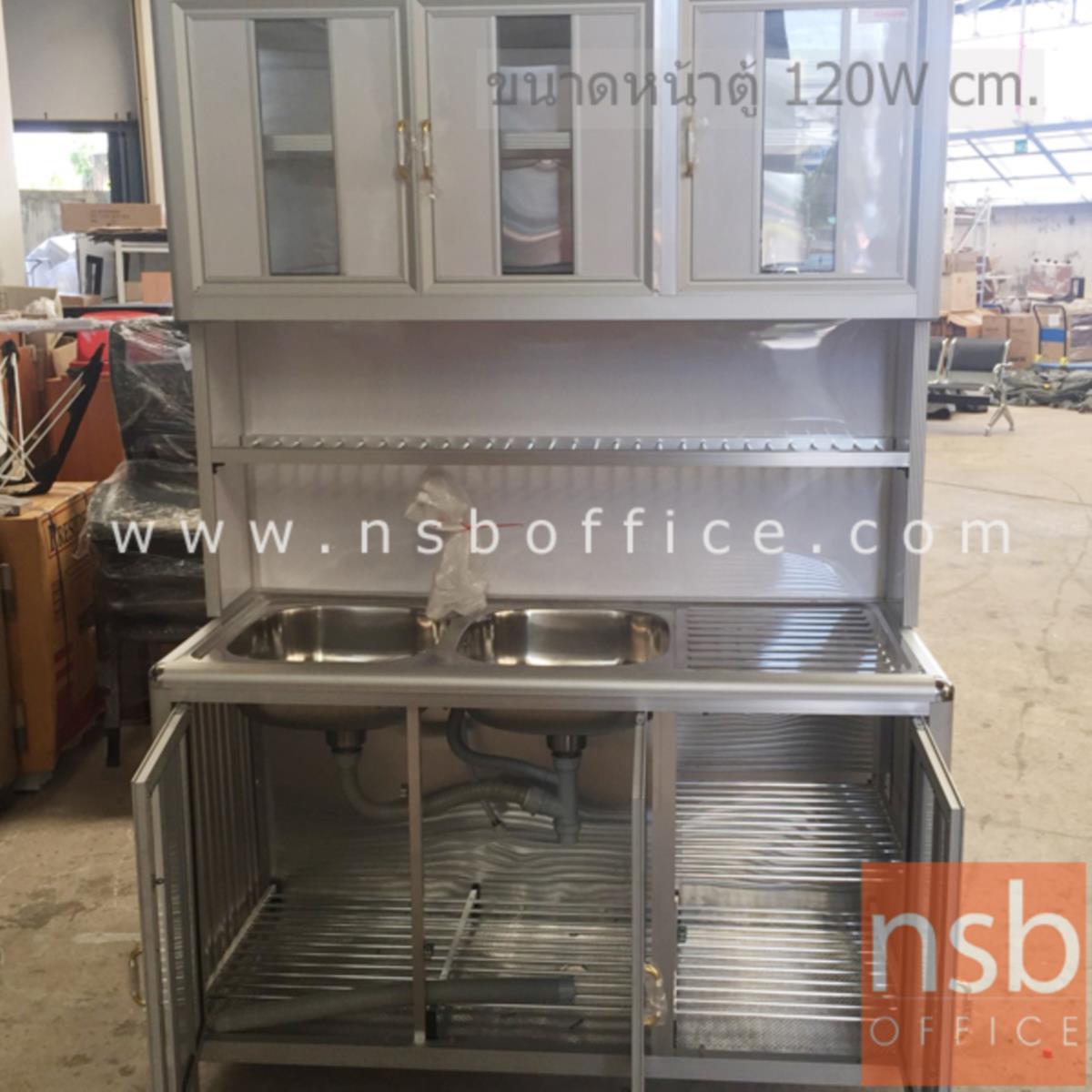 : ตู้ครัวอ่างซิงค์สแตนเลส 2 หลุม อลูมิเนียมมุมมน 120W cm. (สีเงินและสีชา)