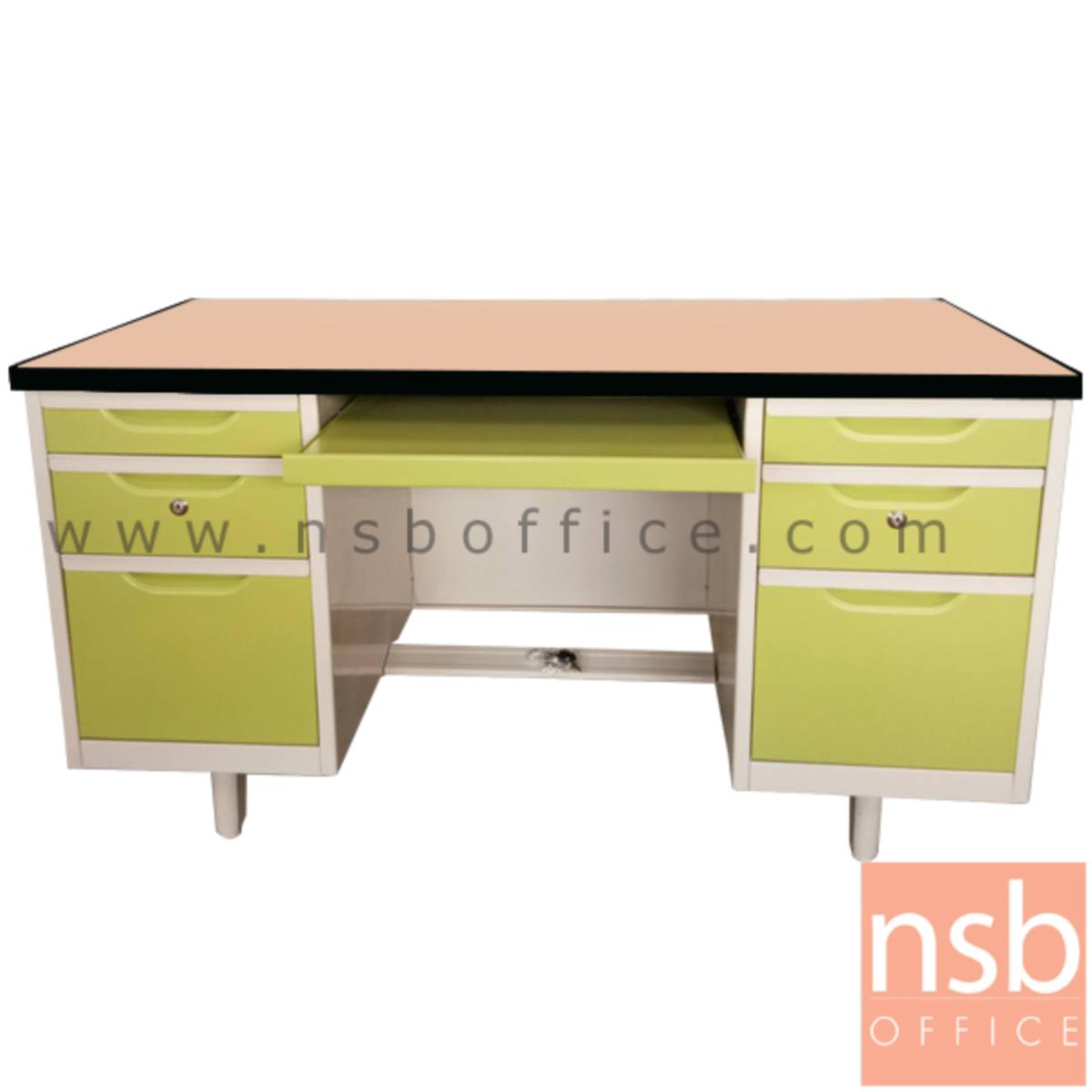 5 ฟุต หน้า TOP ไม้เมลามีน / โครงผลิตจากเหล็ก หนา 0.5 มม. /โครงสีขาวมุก หน้าบานสีสัน มี 3 ลิ้นชักและ1 รางคีย์บอร์ด