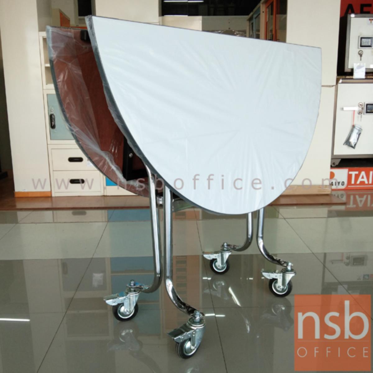 A07A013: โต๊ะพับหน้าโฟเมก้าขาวล้อเลื่อน 25 มม. รุ่น Blakely (เบล็กลี่) ขนาด 4 ,5 ,6 ฟุต ขาเหล็กชุบโครเมี่ยม