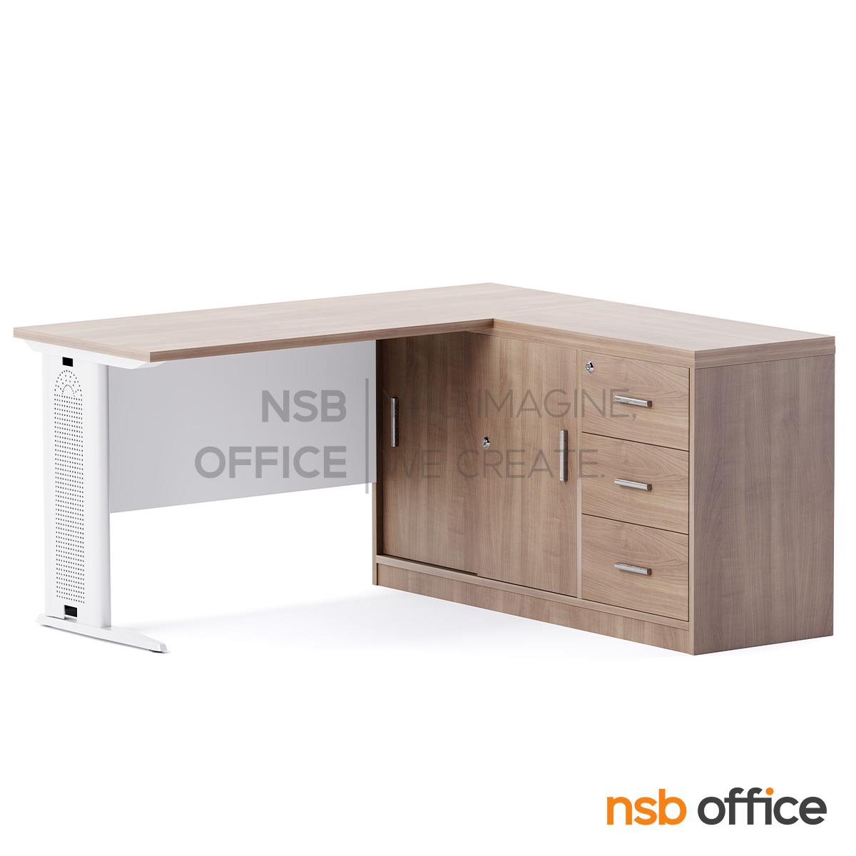 A16A068: โต๊ะทำงานตัวแอล 3 ลิ้นชัก 2 บานเลื่อน รุ่น NSB-NEW ขนาด 120W1 ,135W, 150W cm. ขาเหล็ก