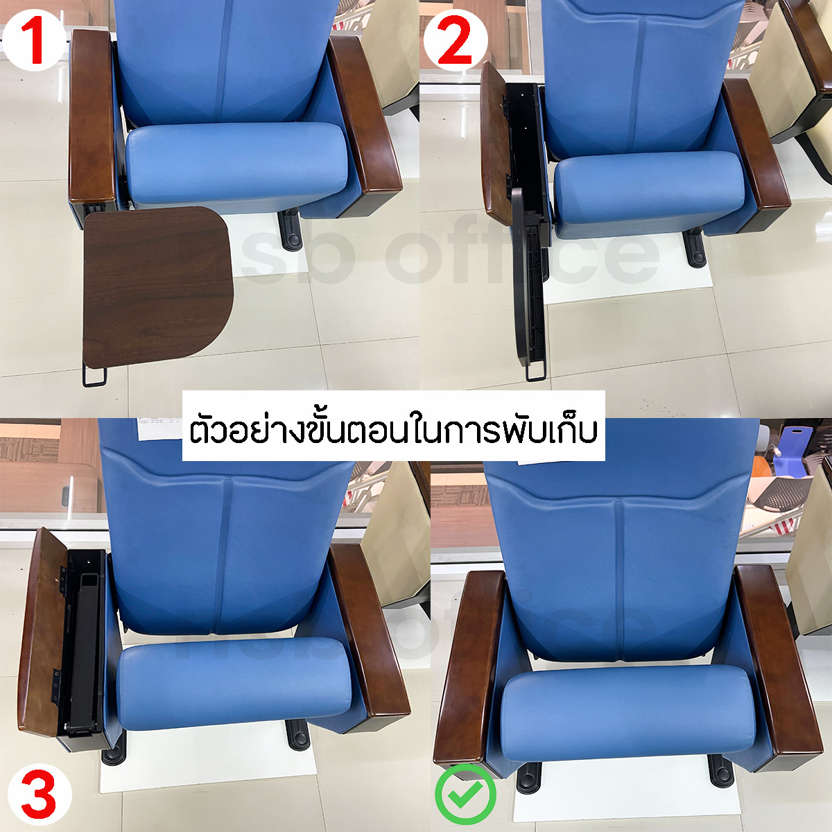 : เก้าอี้หอประชุมแผ่นเลคเชอร์ รุ่น AD-01L แบบแขนกล่อง ที่นั่งพับเก็บได้ (ที่นั่งพร้อมขาเริ่ม)