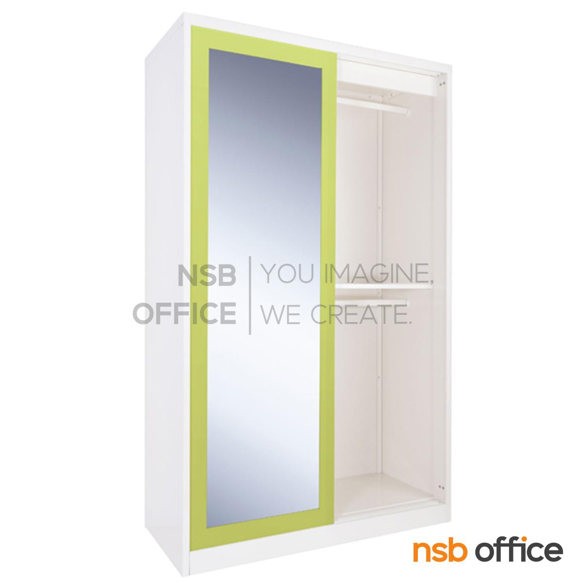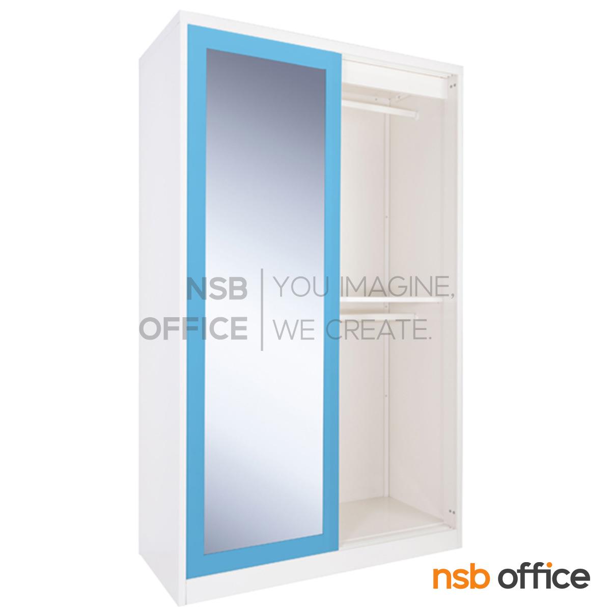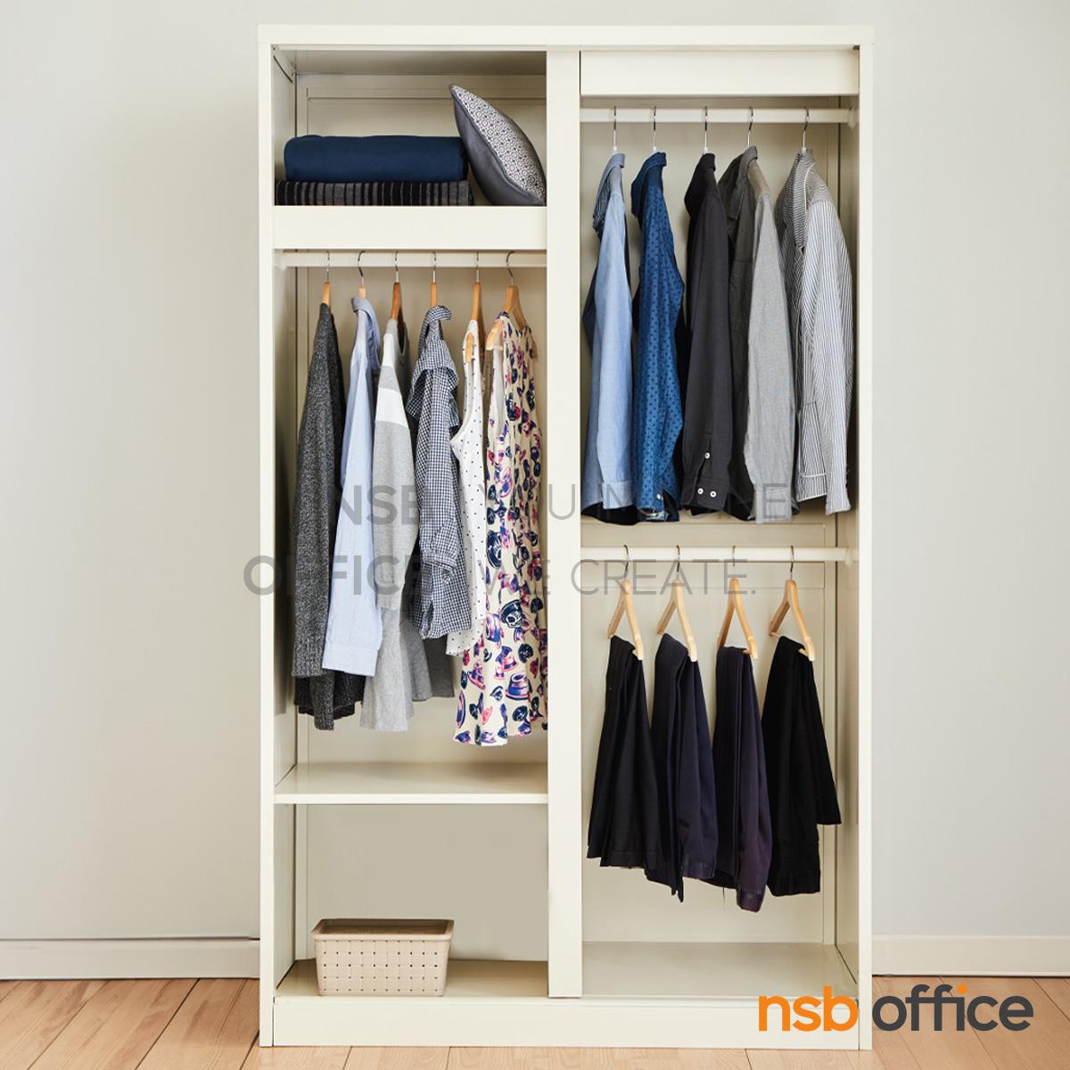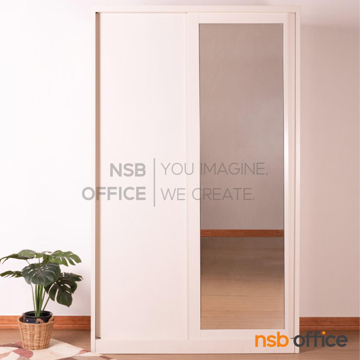 : ตู้เสื้อผ้าบาน 1 บานเลื่อนทึบ 1 เลื่อนกระจกเงา สูง 200H cm. รุ่น BW-02 มีแผ่นกั้นกลาง (3 ราวแขวน ไม่มีลิ้นชักในตู้)