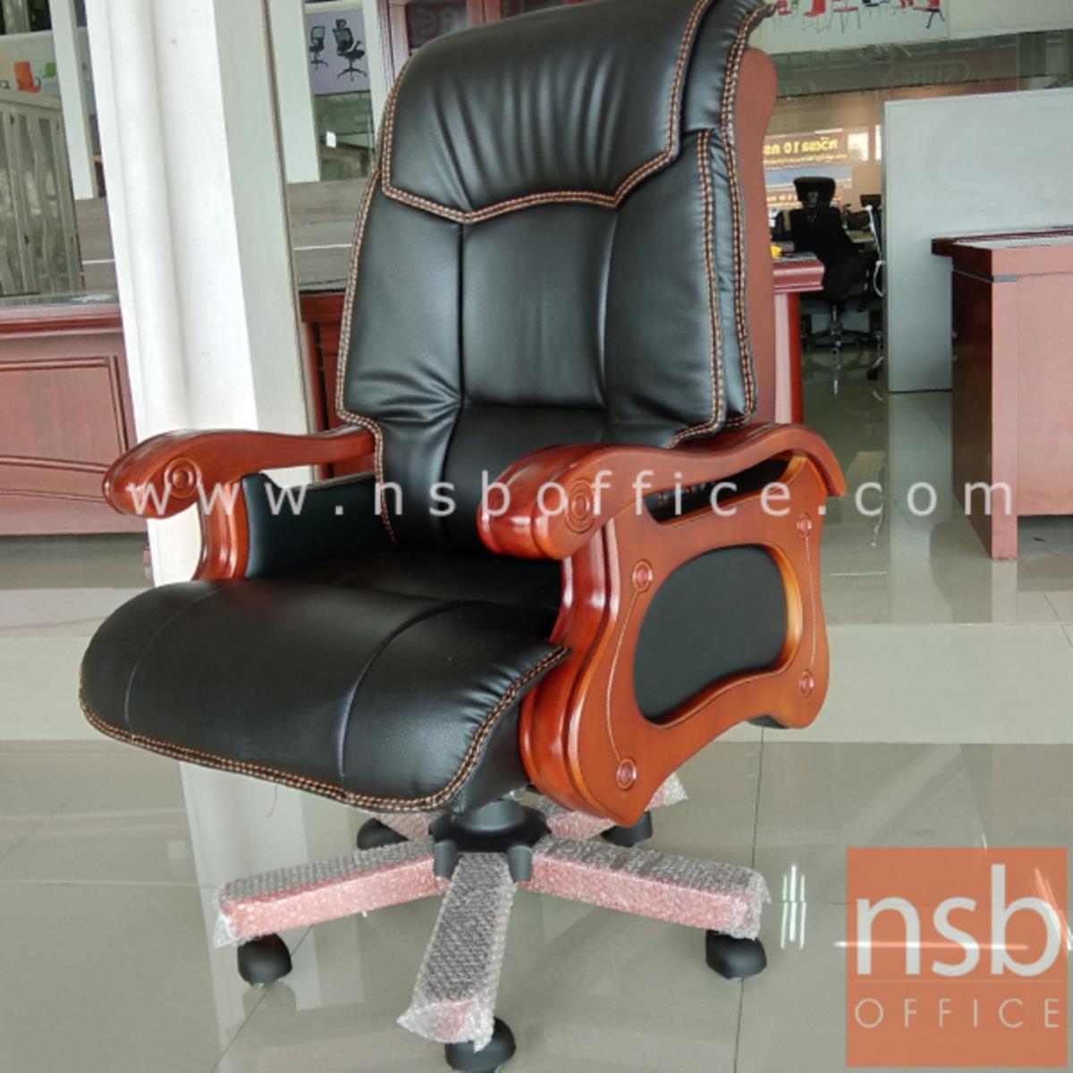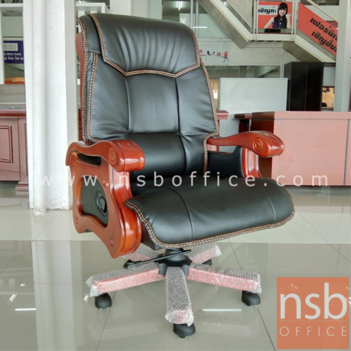 : เก้าอี้ผู้บริหารหุ้มหนัง PU รุ่น Rayborn (เรย์บอร์น) โช๊คแก๊ส ก้อนโยก ขาไม้
