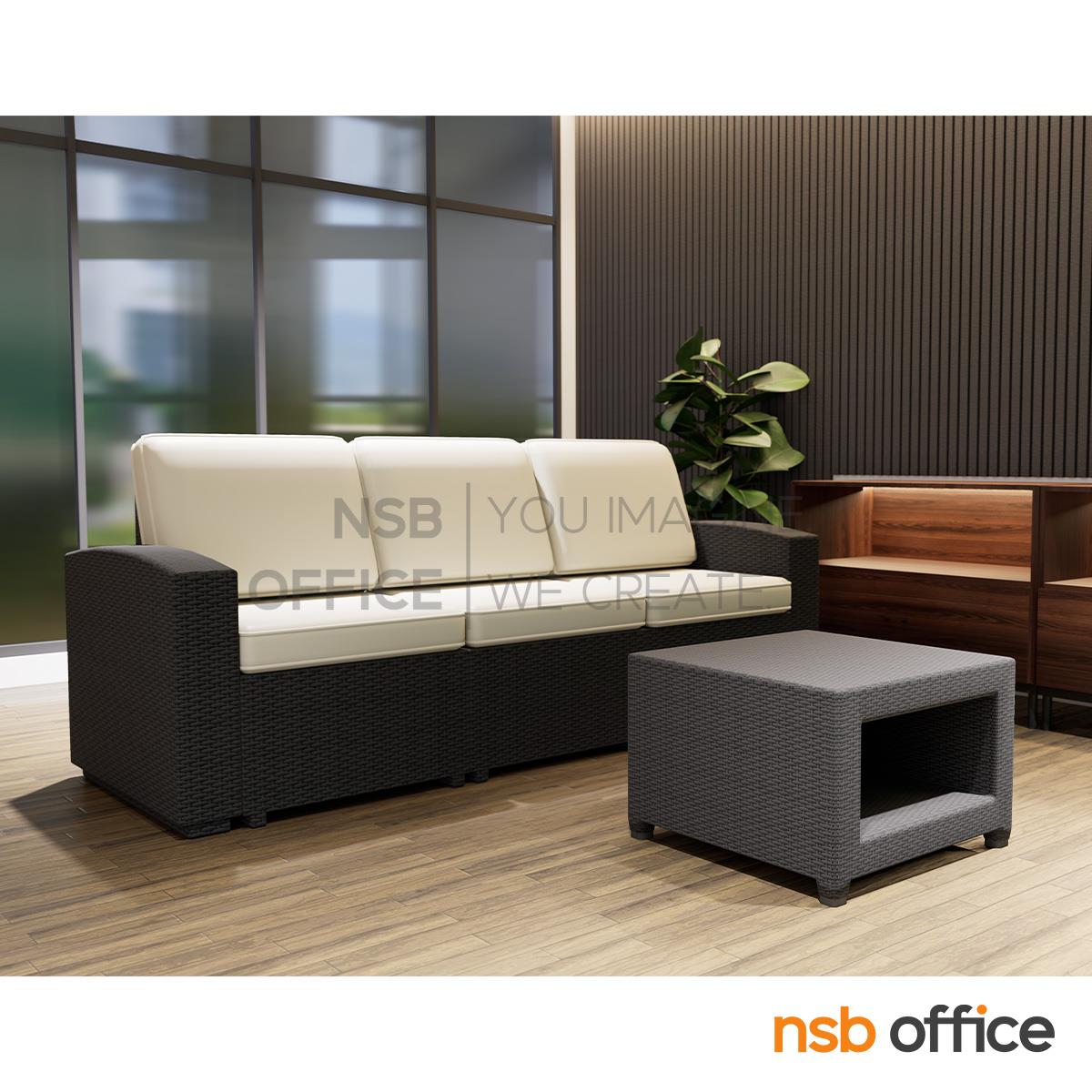 : โต๊ะกลางทรงจัตุรัสปั๊มลายหวายสาน รุ่น Sainsbury ขนาด 56W cm. โครงพลาสติก PP