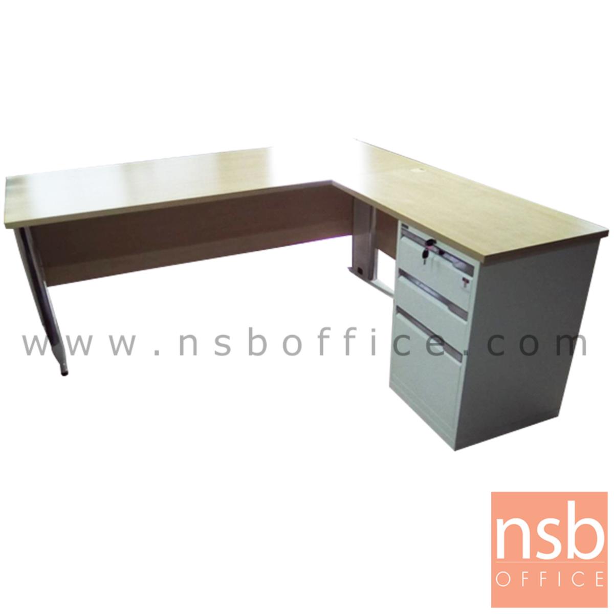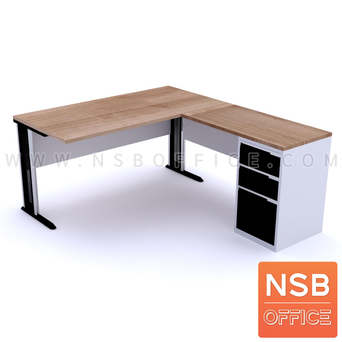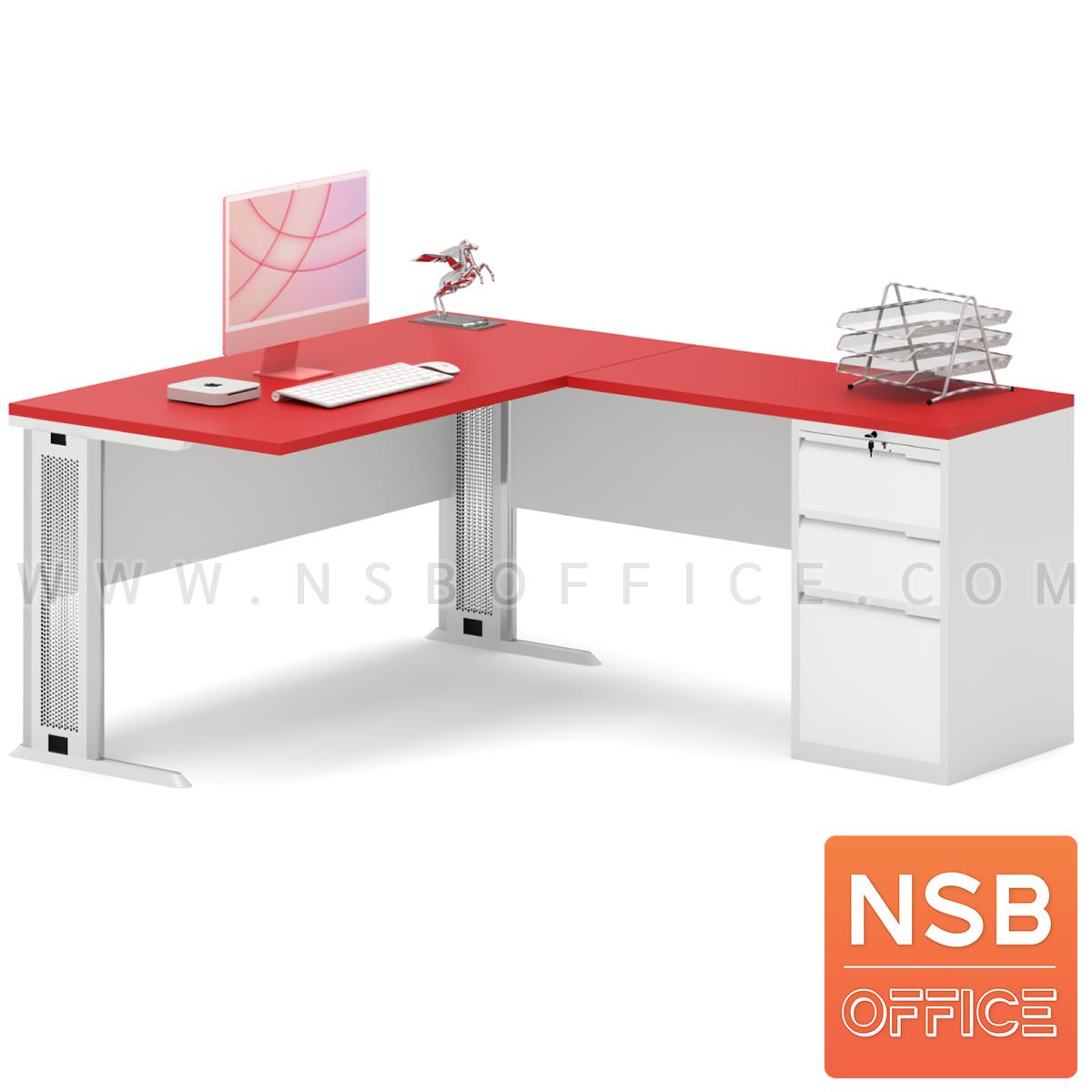 A16A070: โต๊ะผู้บริหารตัวแอล 3 ลิ้นชักเหล็ก รุ่น Fernando (เฟอร์นันโด) ขนาด 150W1, 165W1, 180W1 cm. ระบบรางลูกปืน