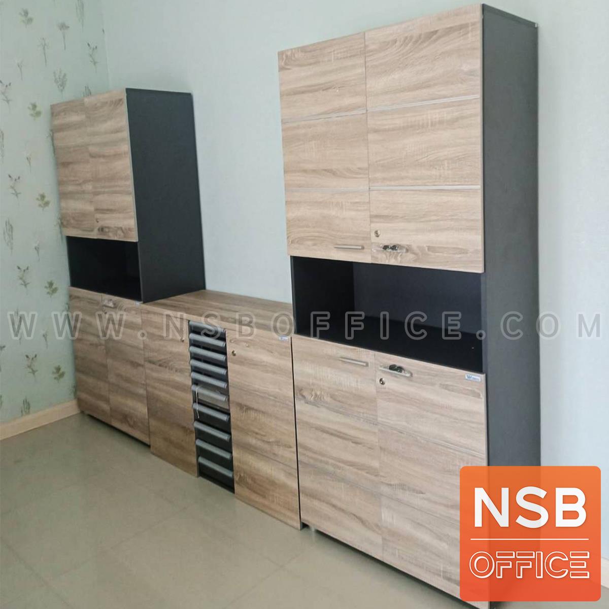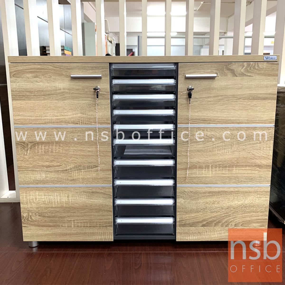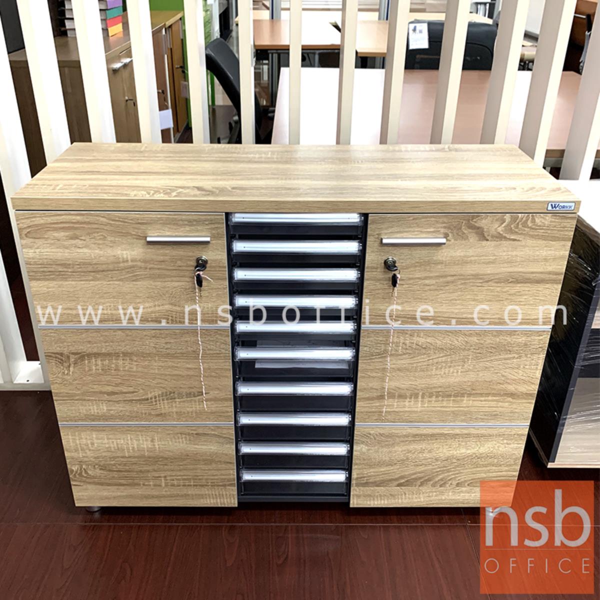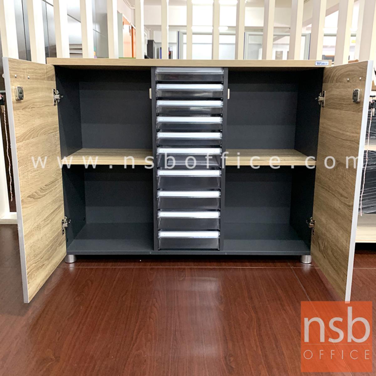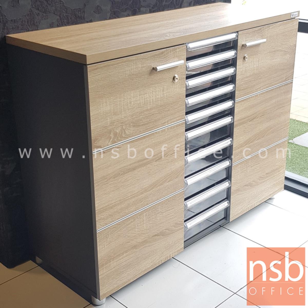 : ตู้เอกสาร สูง 83H cm. 2 บานเปิด 10 ลิ้นชัก รุ่น LCK-1060 เมลามีน สีแกรนโอ๊คตัดกราไฟท์