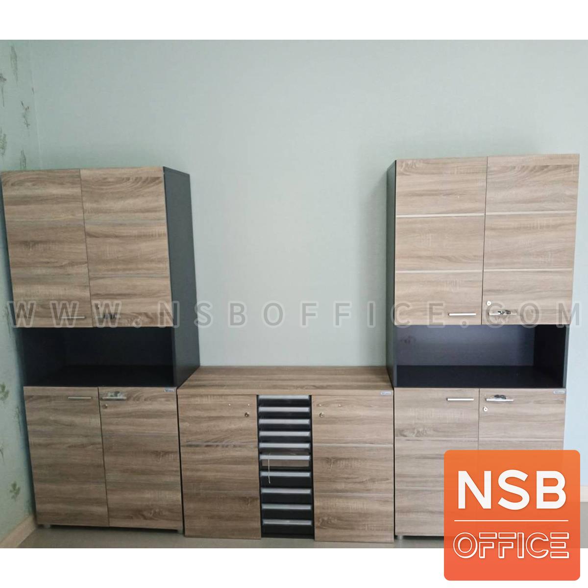 : ตู้เอกสาร สูง 187 cm. 4 บานเปิด 1 ช่องโล่ง รุ่น HCK-811 เมลามีน สีแกรนโอ๊คตัดกราไฟท์
