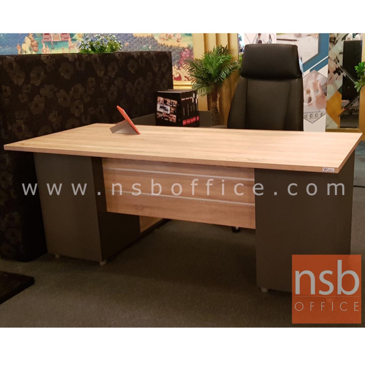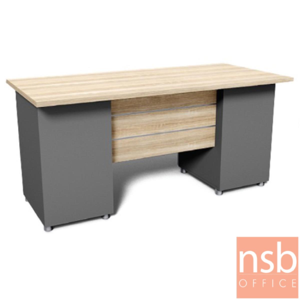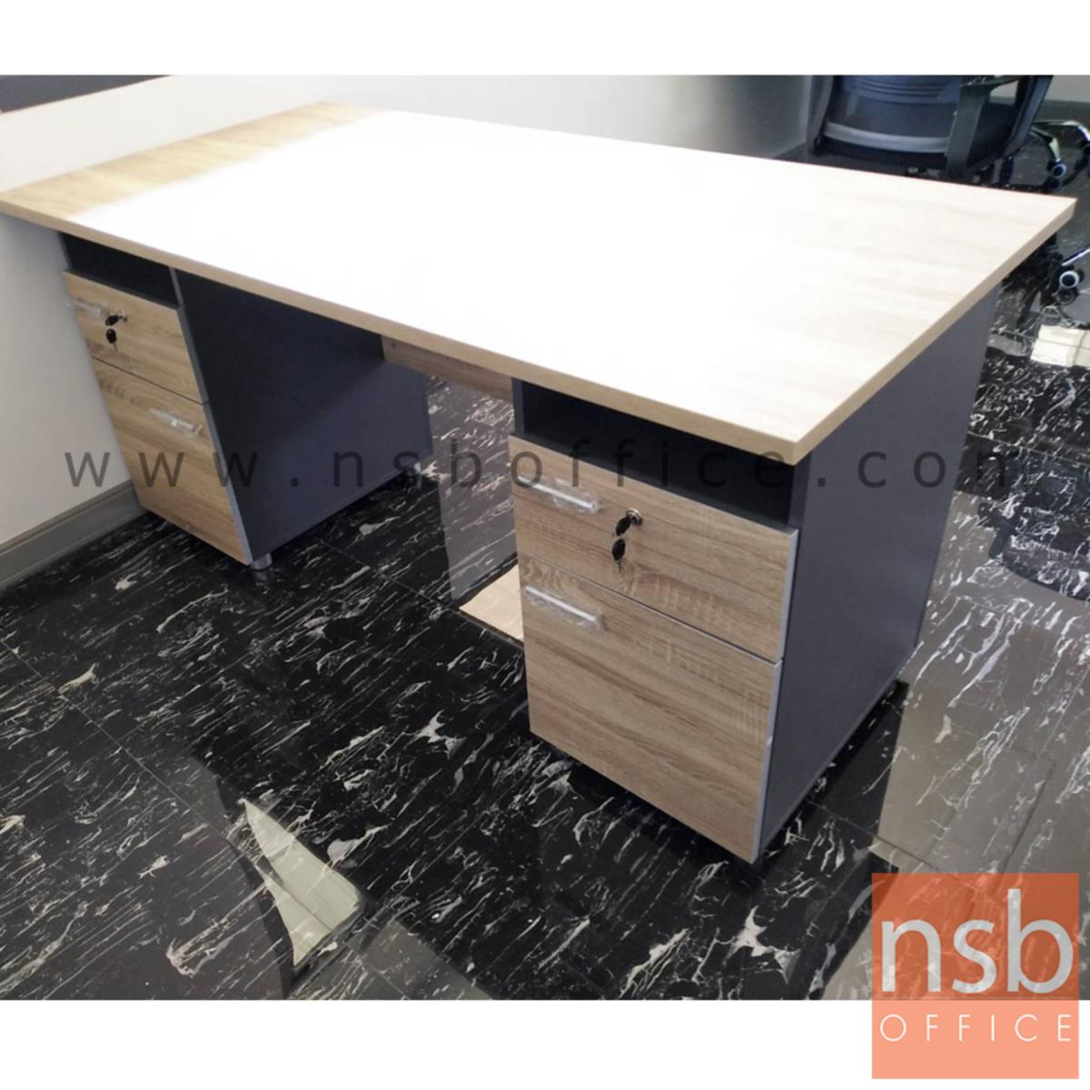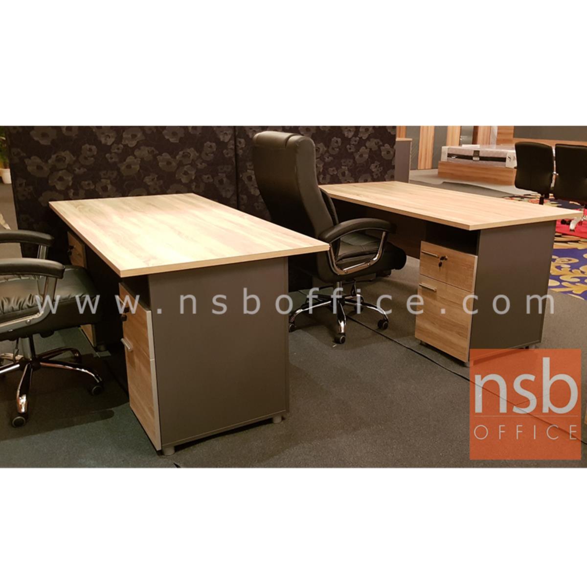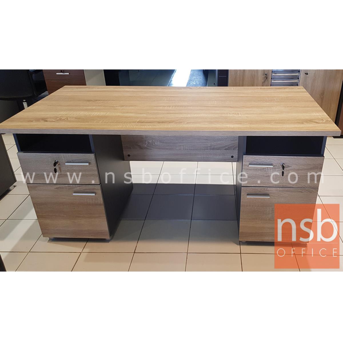A13A195: โต๊ะทำงาน 4 ลิ้นชัก รุ่น DKK-1622 ขนาด 160W cm. เมลามีน สีแกรนโอ๊คตัดกราไฟท์