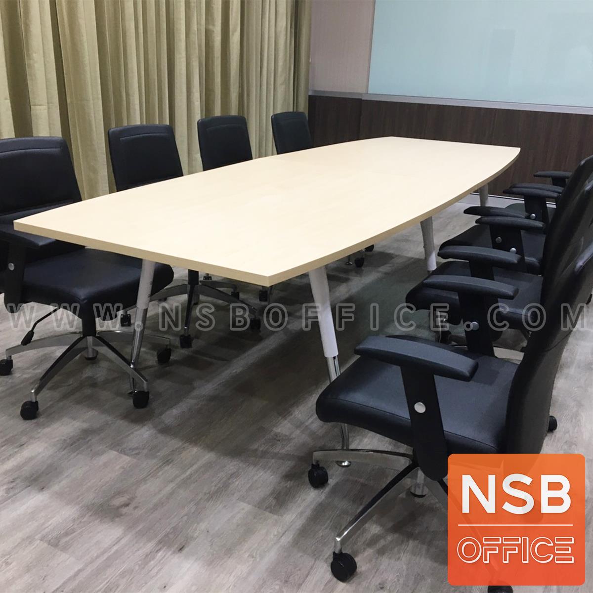 : โต๊ะประชุมทรงเรือ ขนาด 320W cm. ขาเหล็กพ่นสีขาว