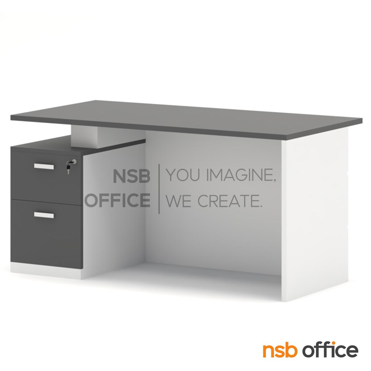 : โต๊ะทำงาน 2 ลิ้นชัก รุ่น Plumcot (พลัมคอต) ขนาด 150W cm. (ลิ้นชักขวา) พร้อมบังตาไม้ปิดเต็มแผ่น เมลามีน