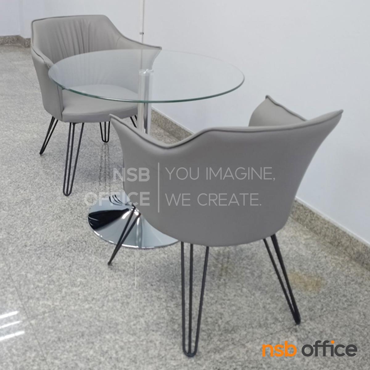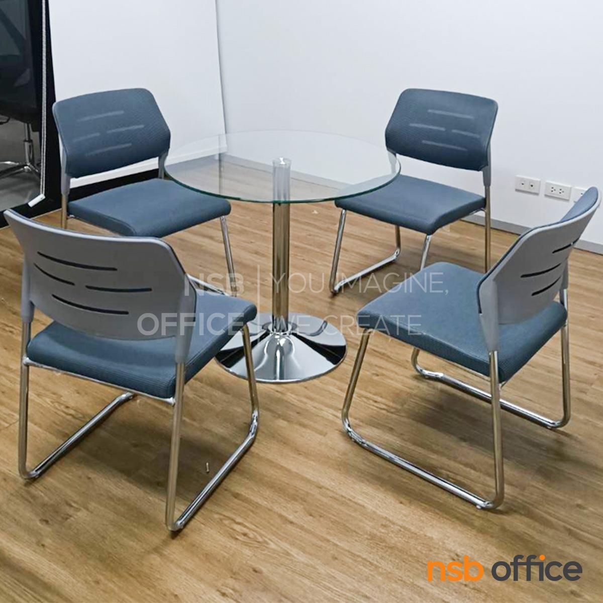 : โต๊ะกลมหน้ากระจก รุ่น Honey (ฮันนี) ขนาด 80Di cm. โครงขาเหล็กชุบโครเมี่ยม