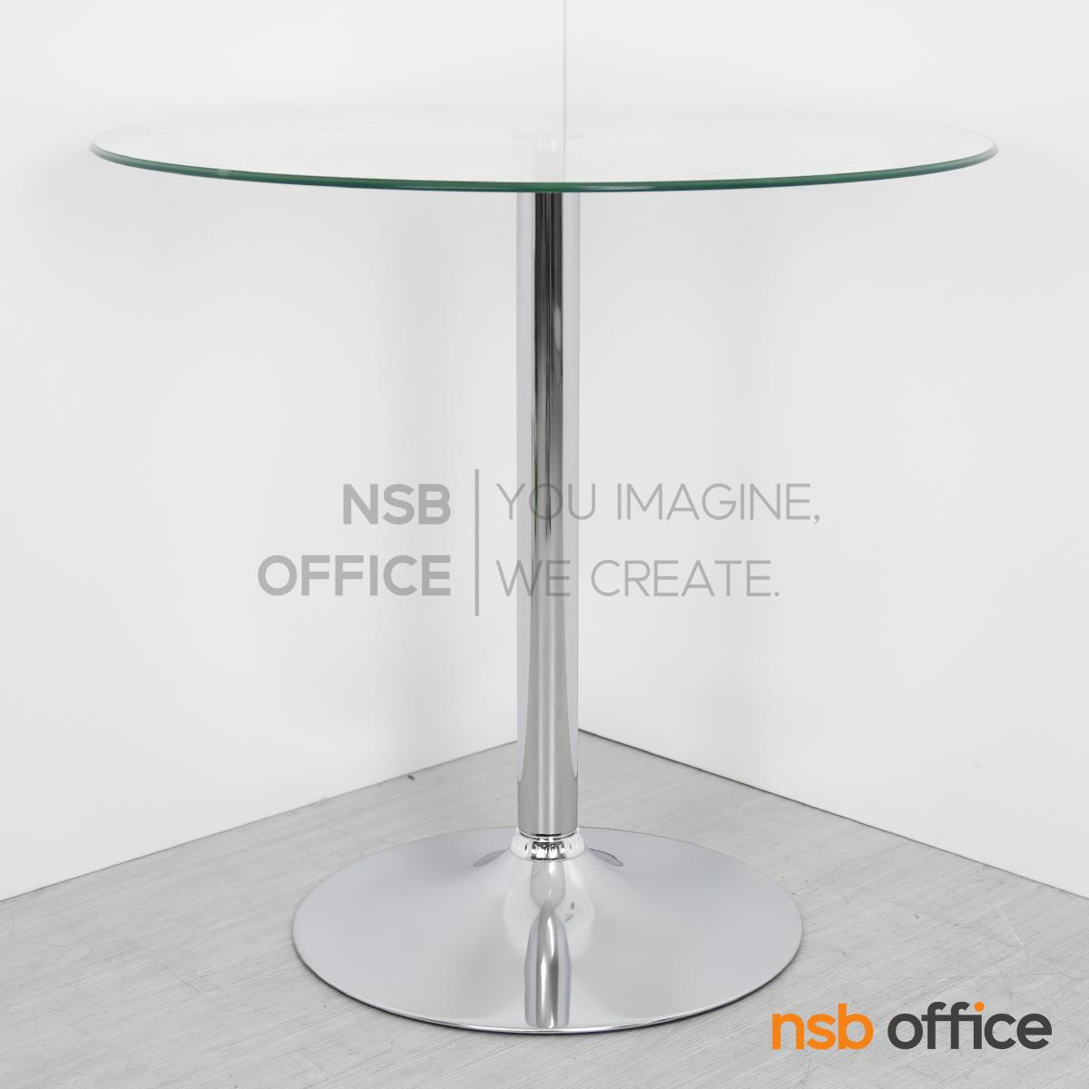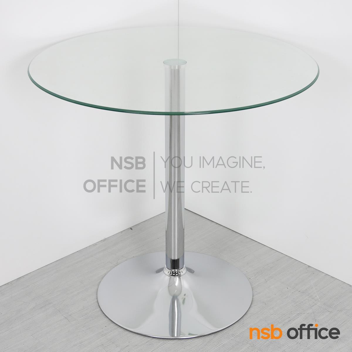A09A047: โต๊ะกลมหน้ากระจก รุ่น Honey (ฮันนี) ขนาด 60Di, 80Di cm. โครงขาเหล็กชุบโครเมี่ยม