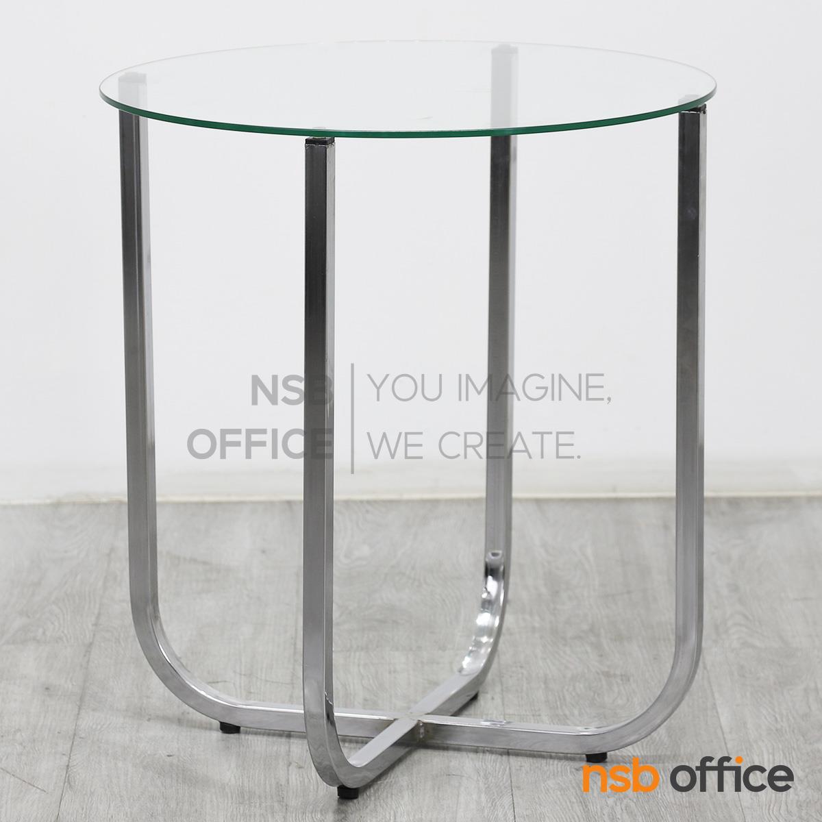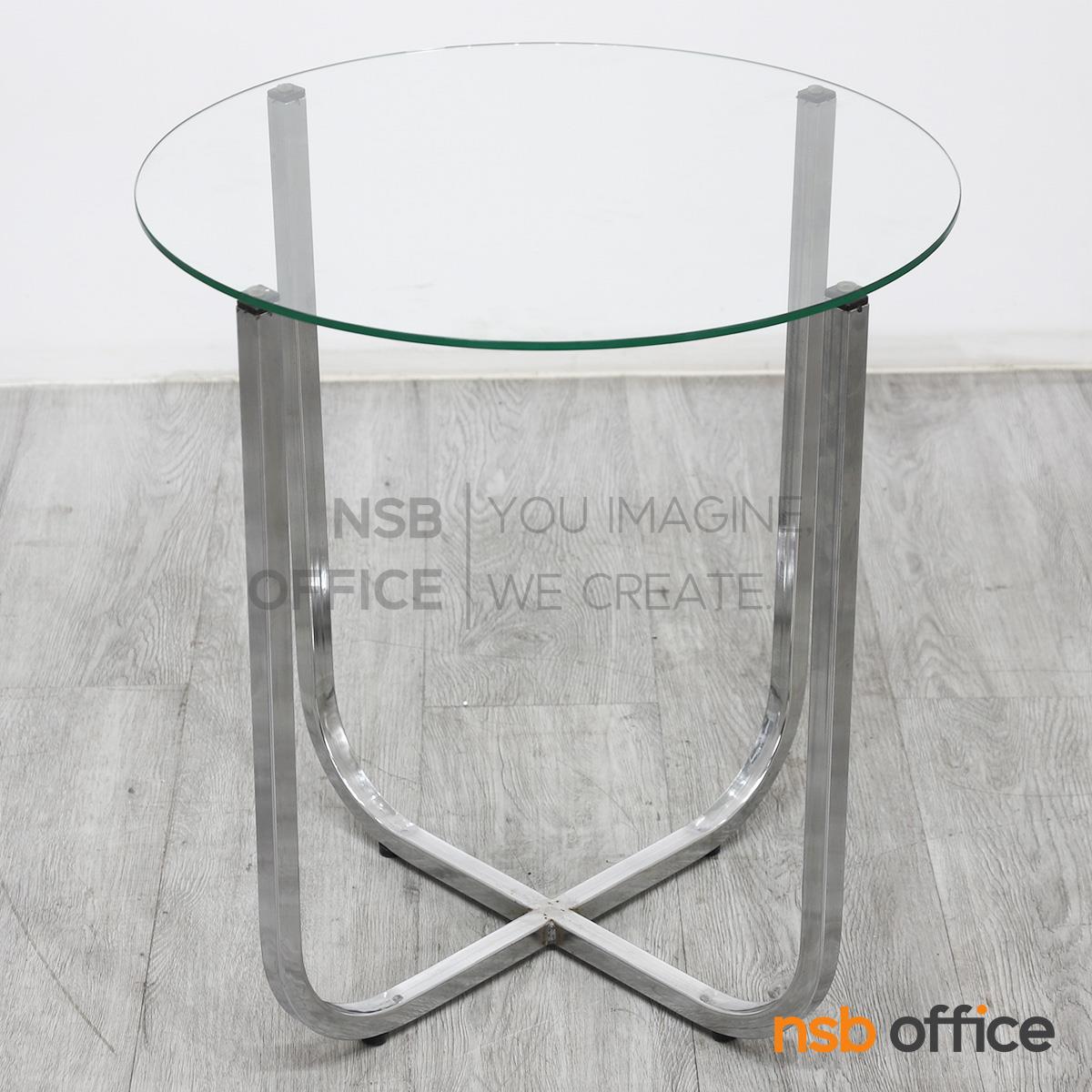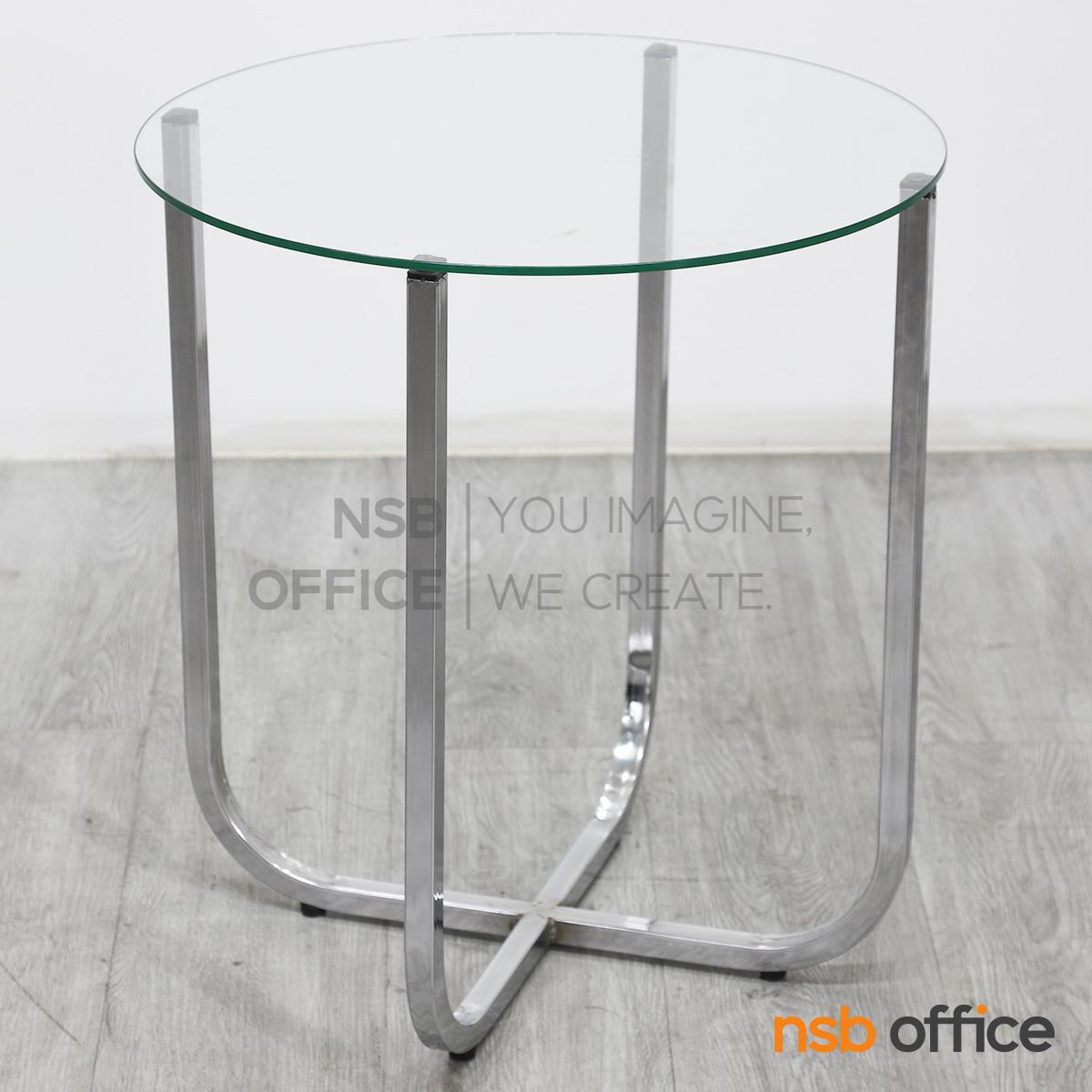 B13A250: โต๊ะกลางกระจก ขนาด 50Di cm. โครงเหล็กชุบโครเมี่ยม