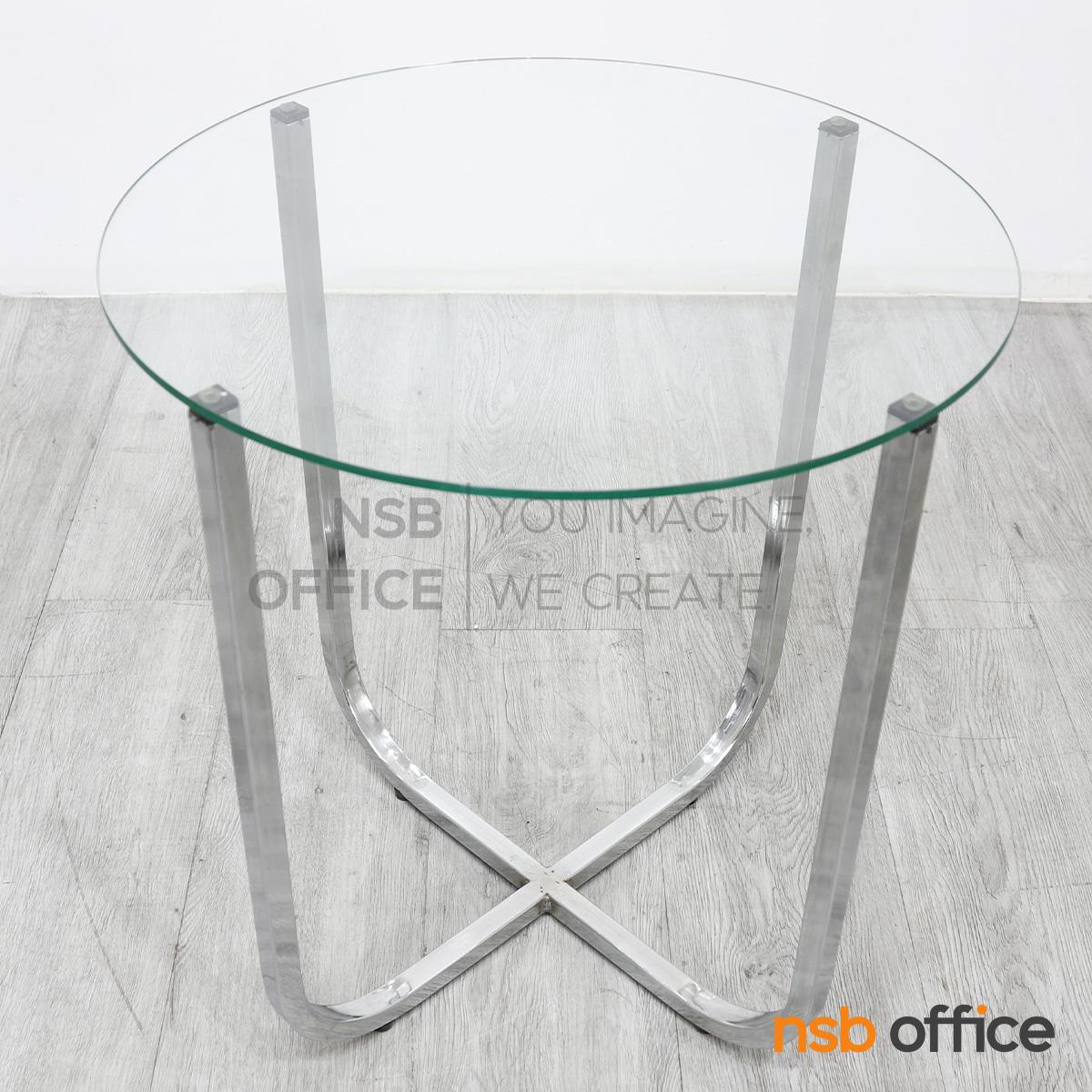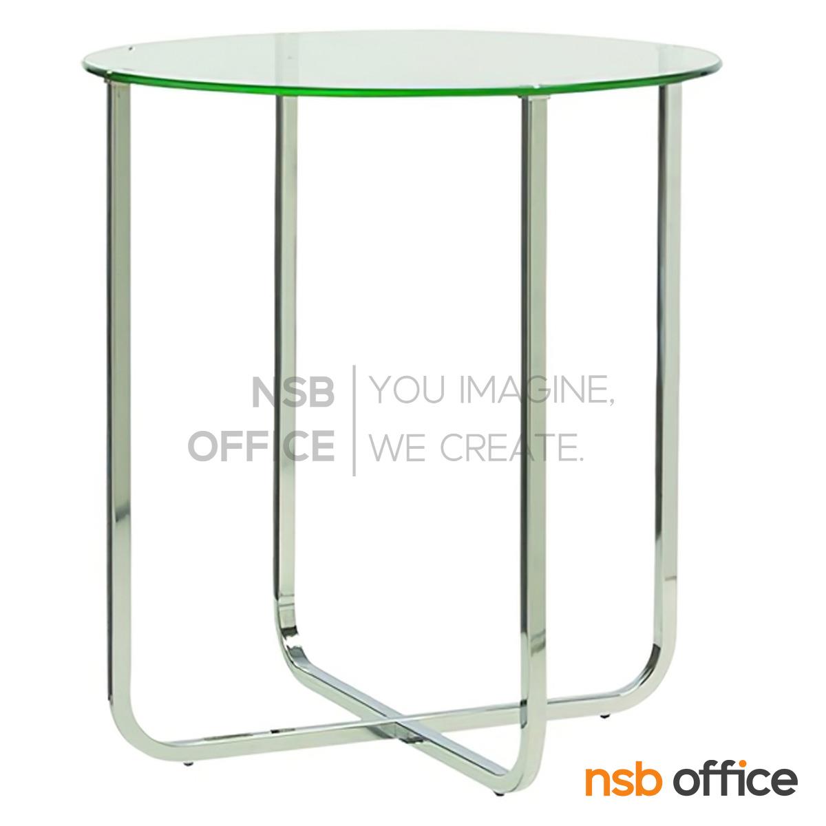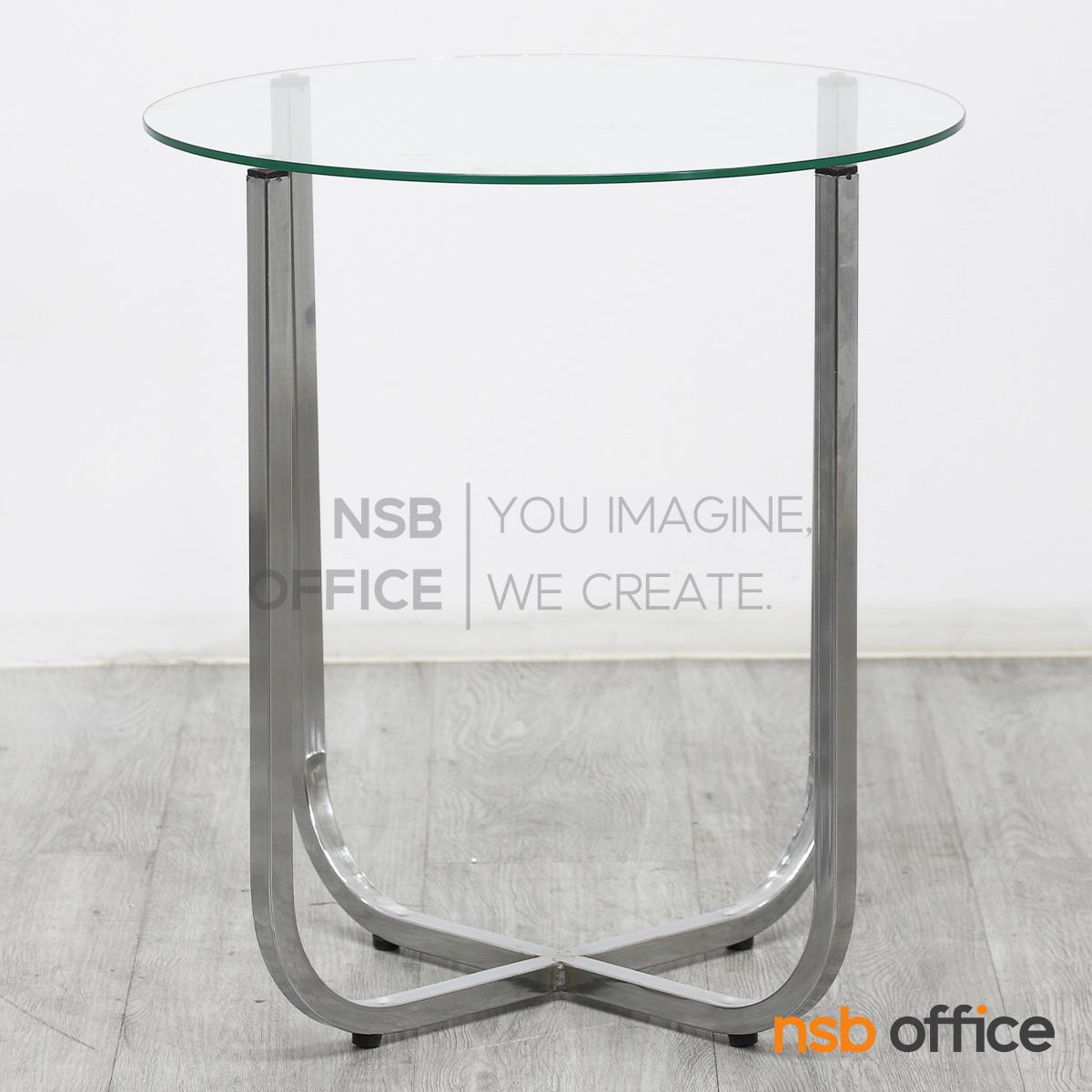 B13A250: โต๊ะกลางกระจก ขนาด 50Di cm. โครงเหล็กชุบโครเมี่ยม