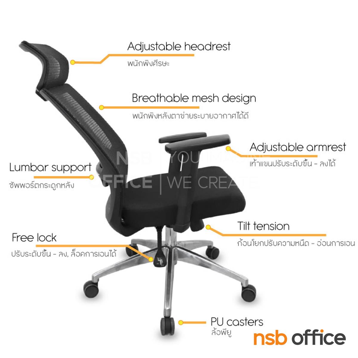 : เก้าอี้ผู้บริหารหลังเน็ต รุ่น Perrineau (แพร์ริโน) โช๊คแก๊ส มีก้อนโยก ขาอลูมิเนียม