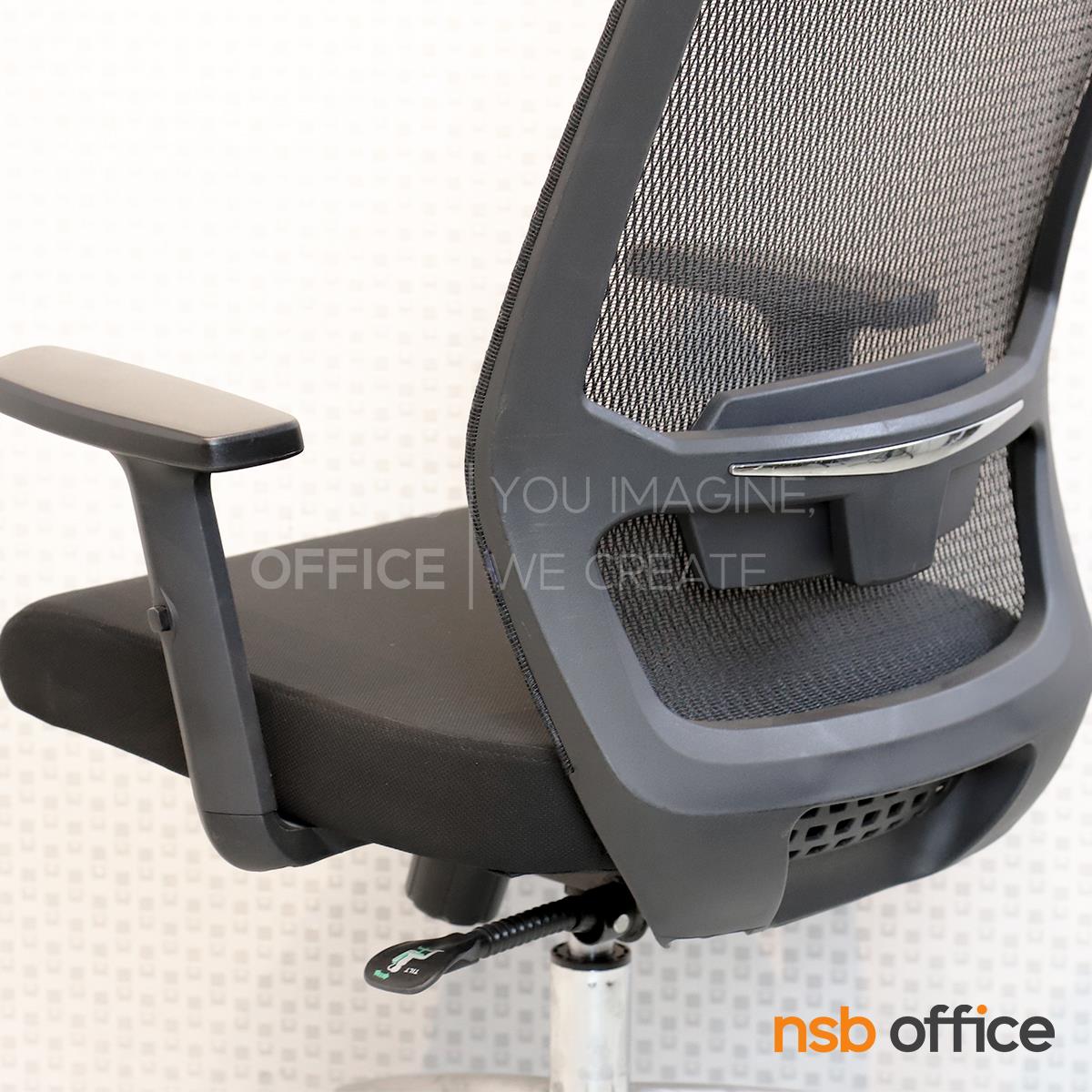 พนักพิงผลิตจากผ้าตาข่าย (Mesh) คุณสมบัติระบายอากาศได้ดี ลดความร้อนสะสมขณะใช้งาน พร้อมโครงสร้างรองรับแผ่นหลังเพื่อความสบายและรองรับสรีระในการนั่งทำงานระยะยาว