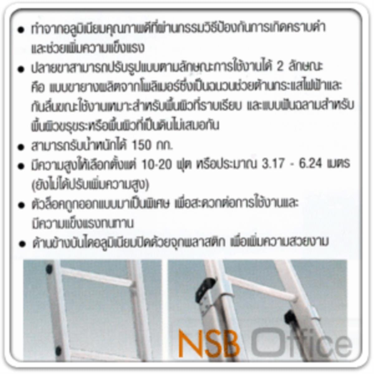 บันไดกางพาดตรง แบบ 2 ตอน สไลด์ขึ้นได้ ขนาด 10 ฟุต มีมอก. มาตรฐานอุตสาหกรรม มอก. (3 ม.++)