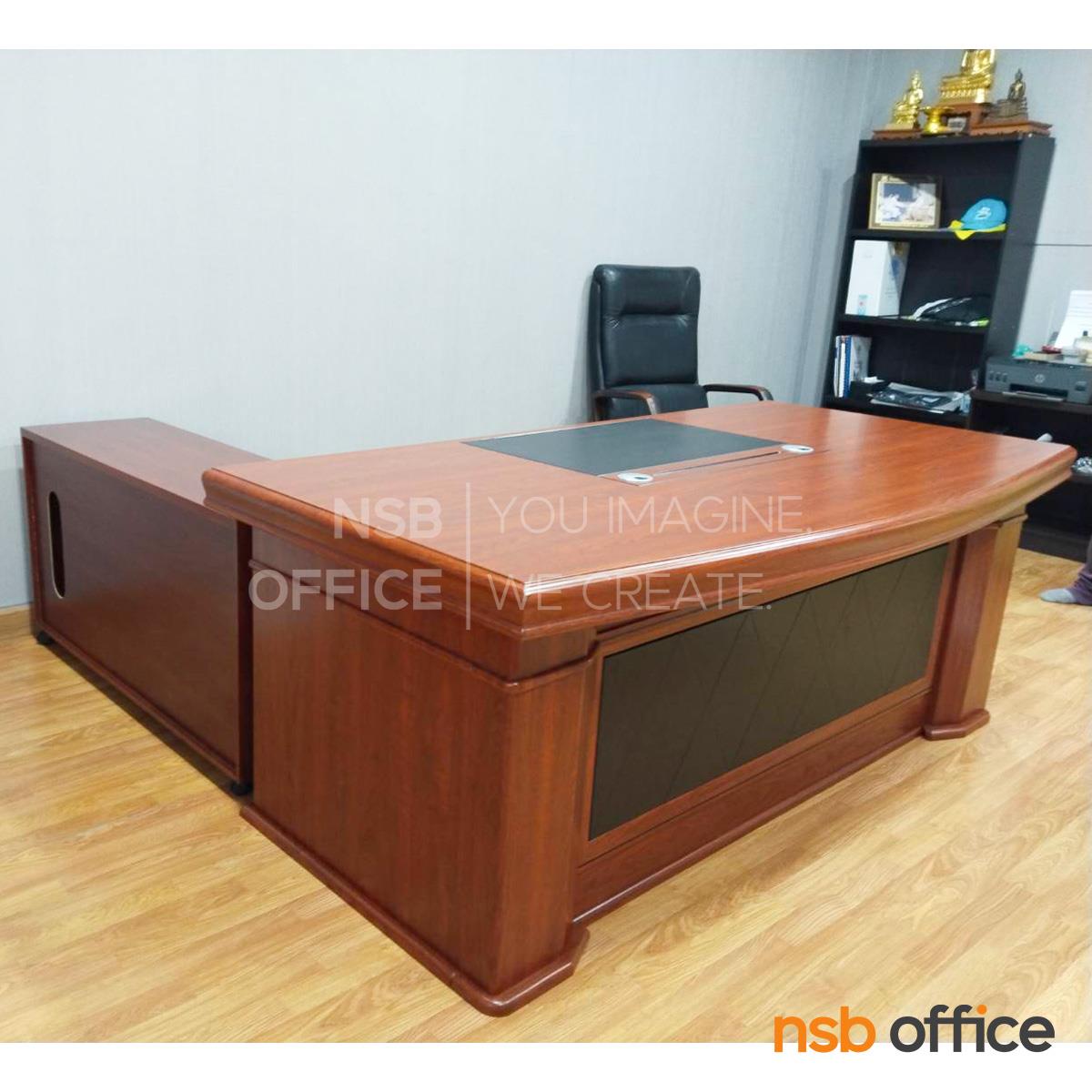 : โต๊ะผู้บริหารตัวแอล รุ่น Railroad (เรลโรด) ขนาด 200W cm. พร้อมตู้ลิ้นชักและตู้ข้างสูงเสมอโต๊ะ