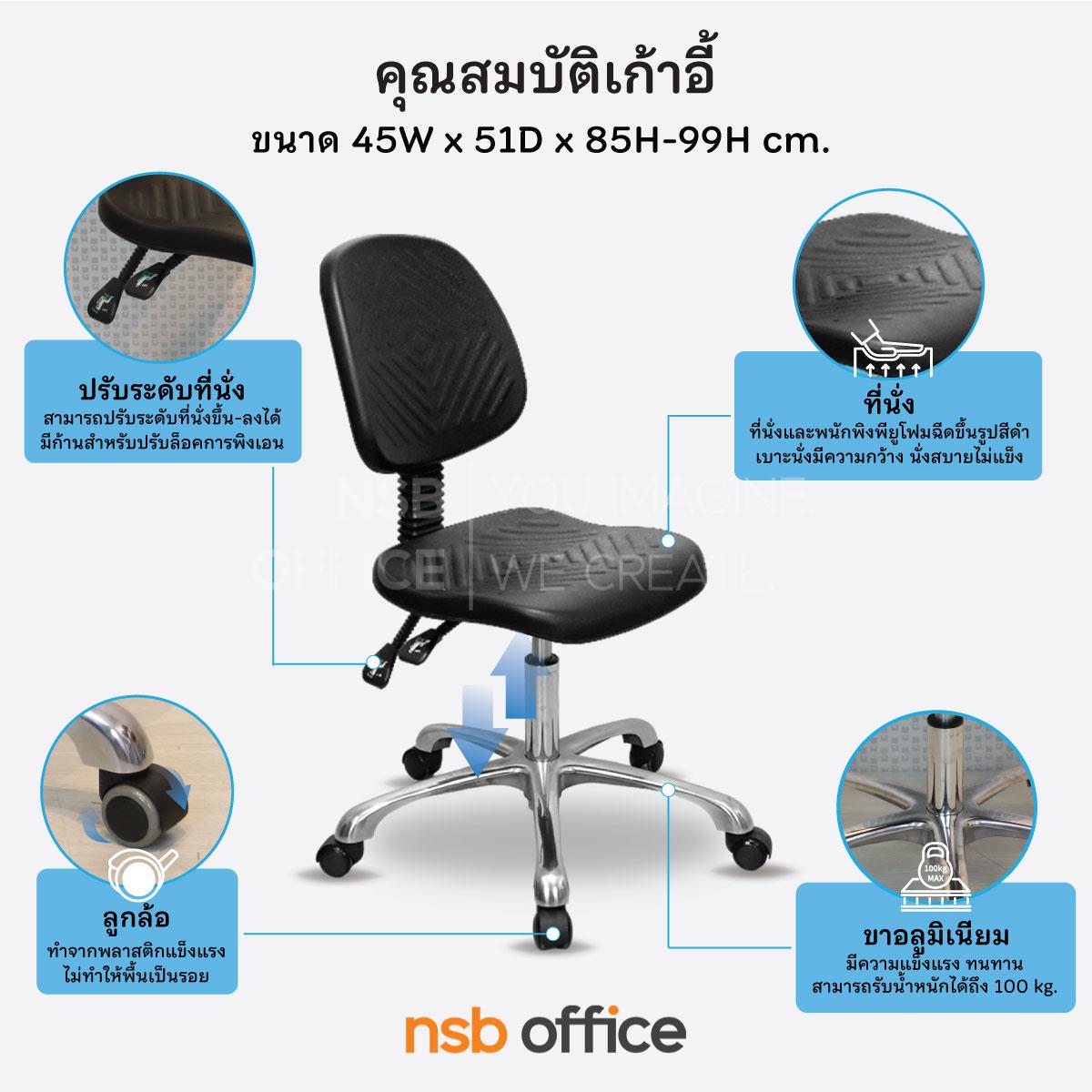 B02A071: เก้าอี้บาร์ที่นั่งเหลี่ยมล้อเลื่อน รุ่น Streep (สตรีป) โช๊คแก๊ส ขาอลูมิเนียม