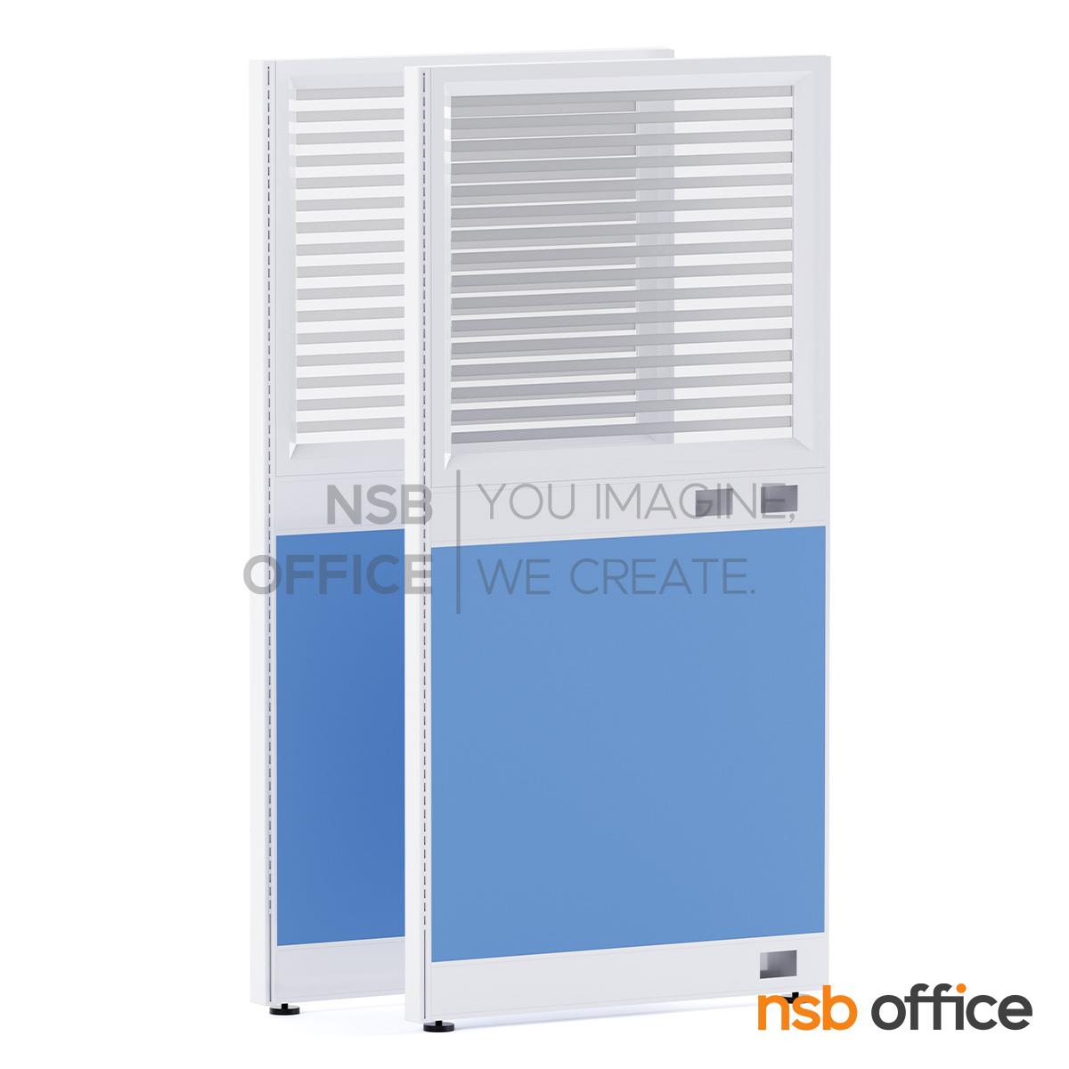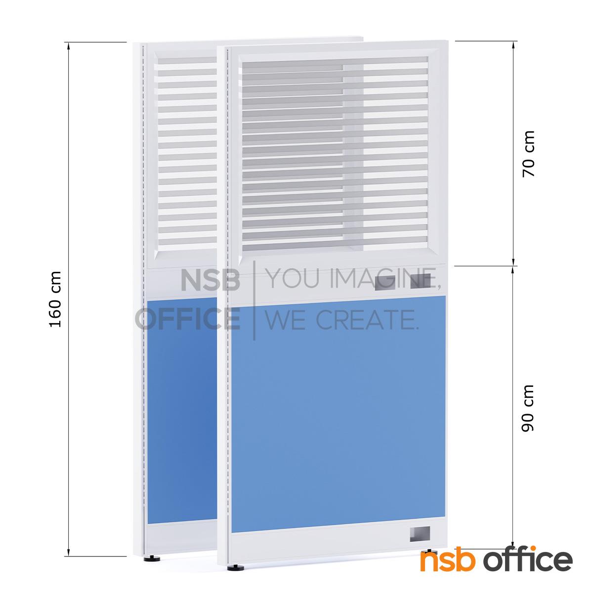 P03A030: พาร์ทิชั่นแบบครึ่งกระจกขัดลาย มีรางไฟตรงกลางและด้านล่าง สูง 160 cm.