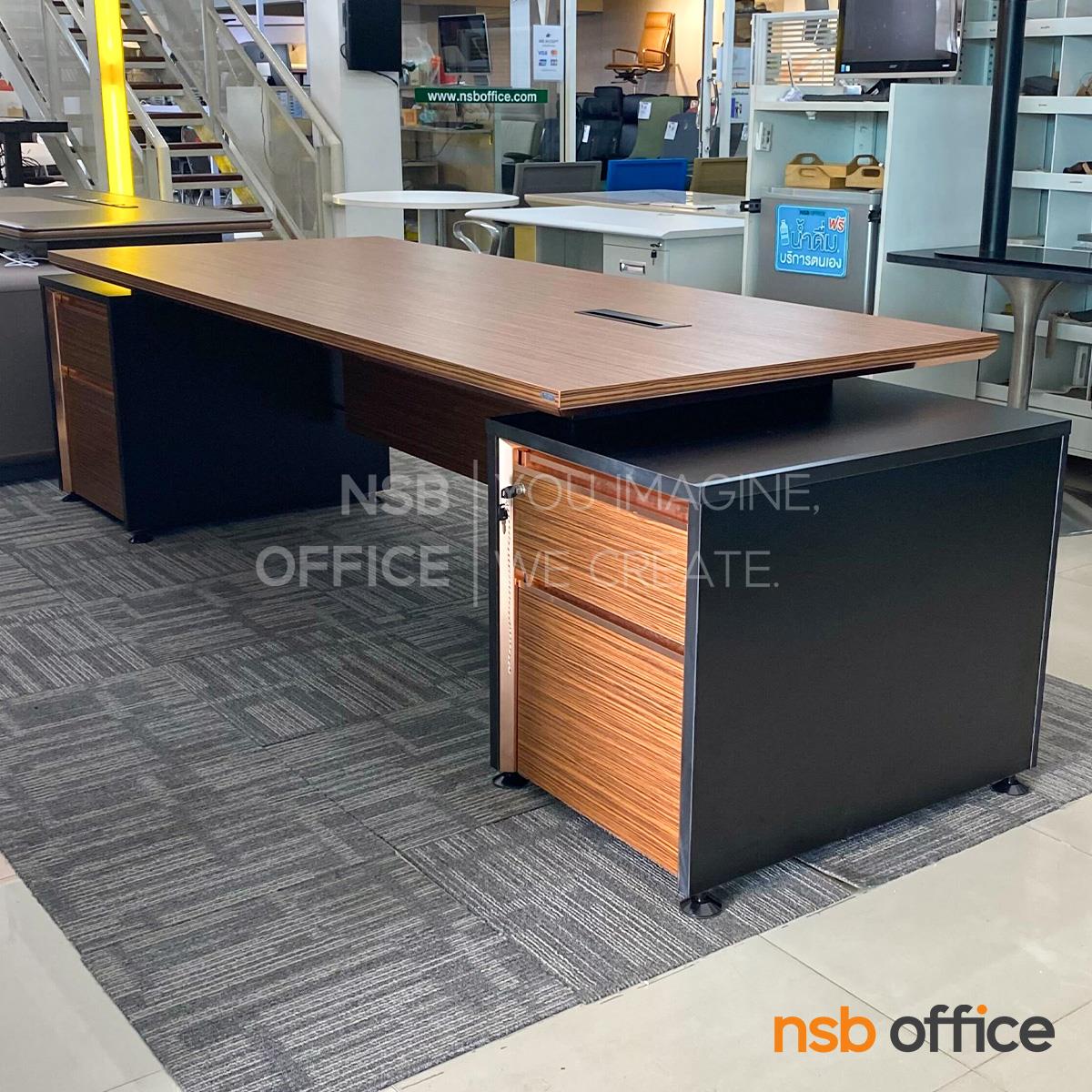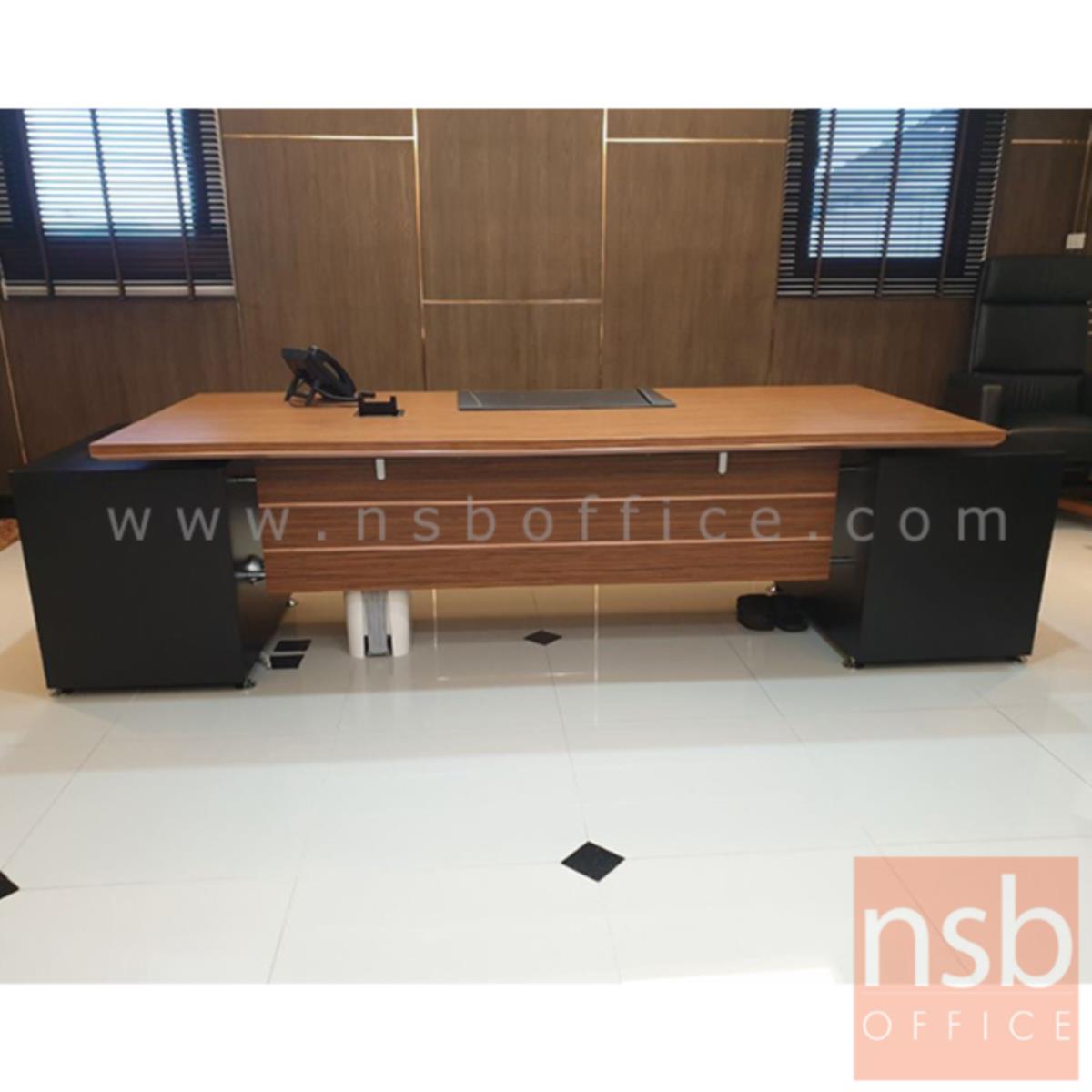 A26A001: โต๊ะผู้บริหาร 2 ลิ้นชักซ้ายขวา รุ่น Bulgari Black ขนาด 289.5W cm. สีลายไม้ซีบราโน่ตัดดำ ขอบ ROSEGOLD