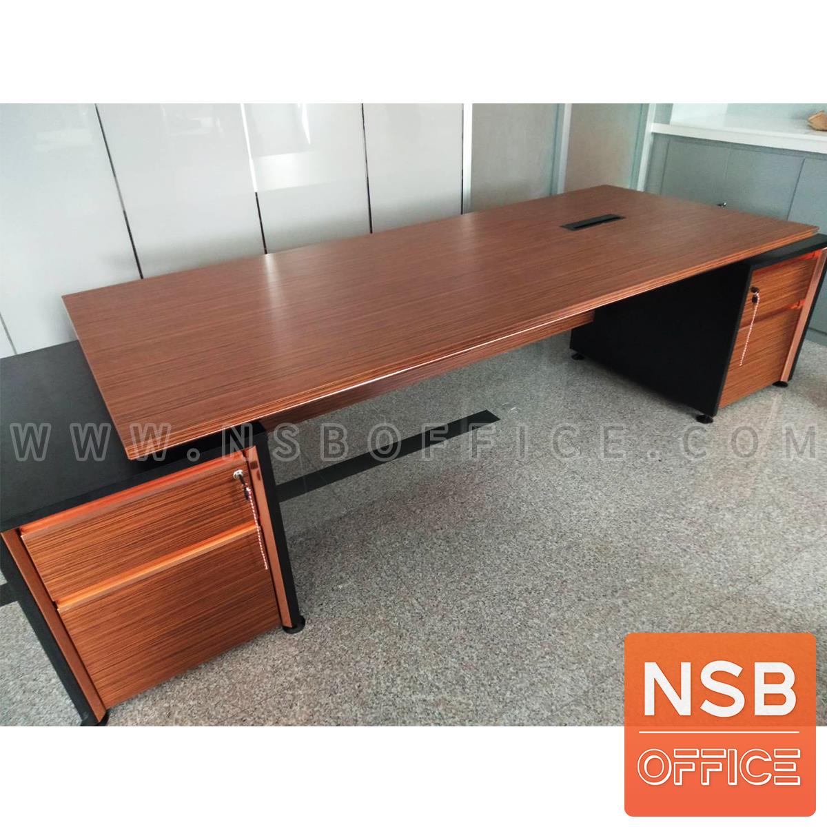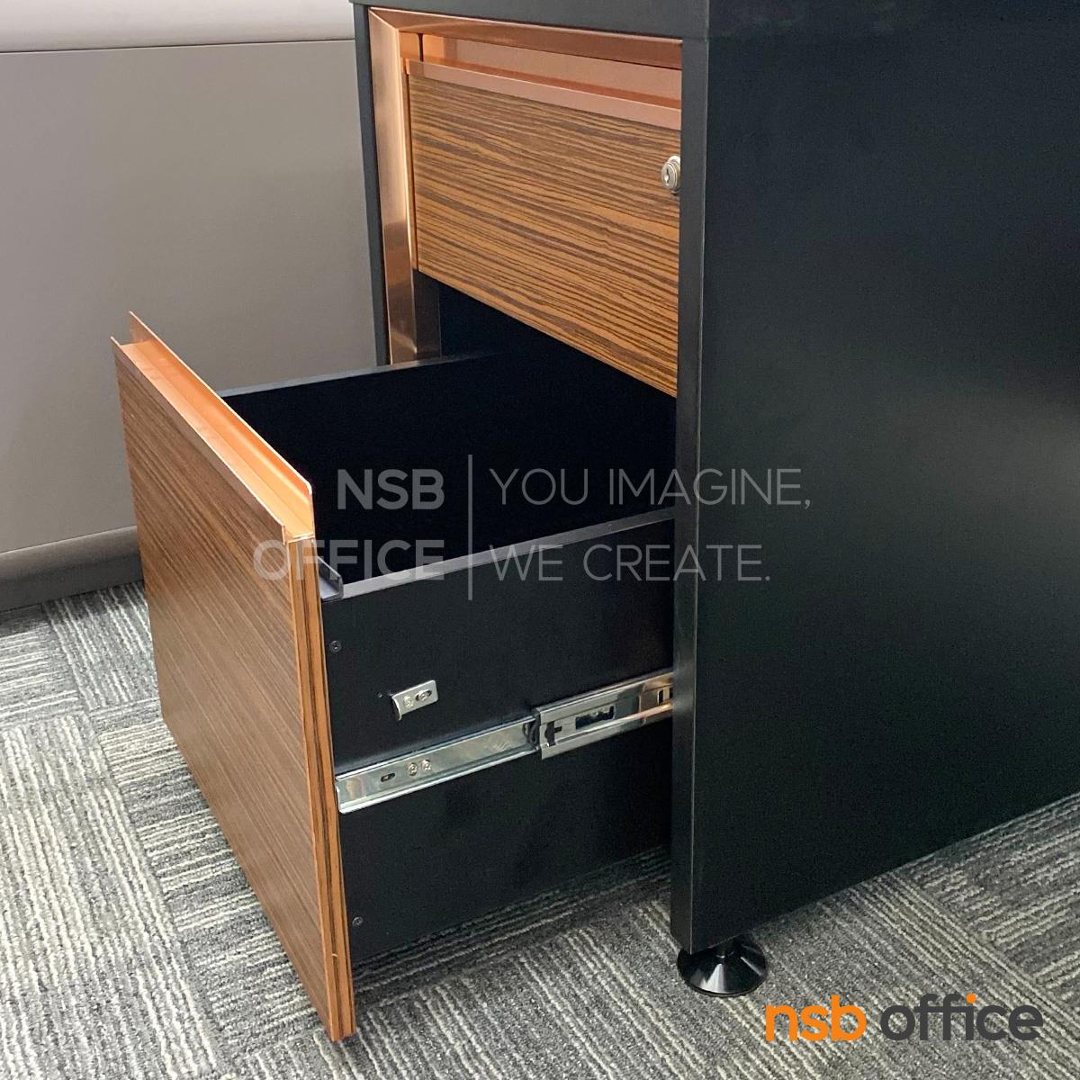 : โต๊ะผู้บริหาร 2 ลิ้นชักซ้ายขวา รุ่น Bulgari Black ขนาด 289.5W cm. สีลายไม้ซีบราโน่ตัดดำ ขอบ ROSEGOLD