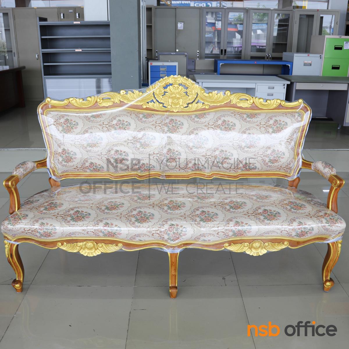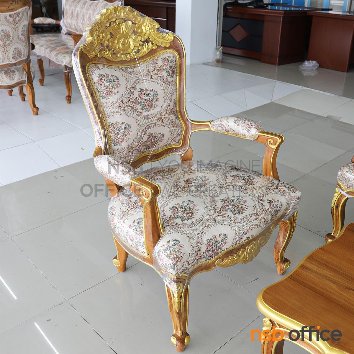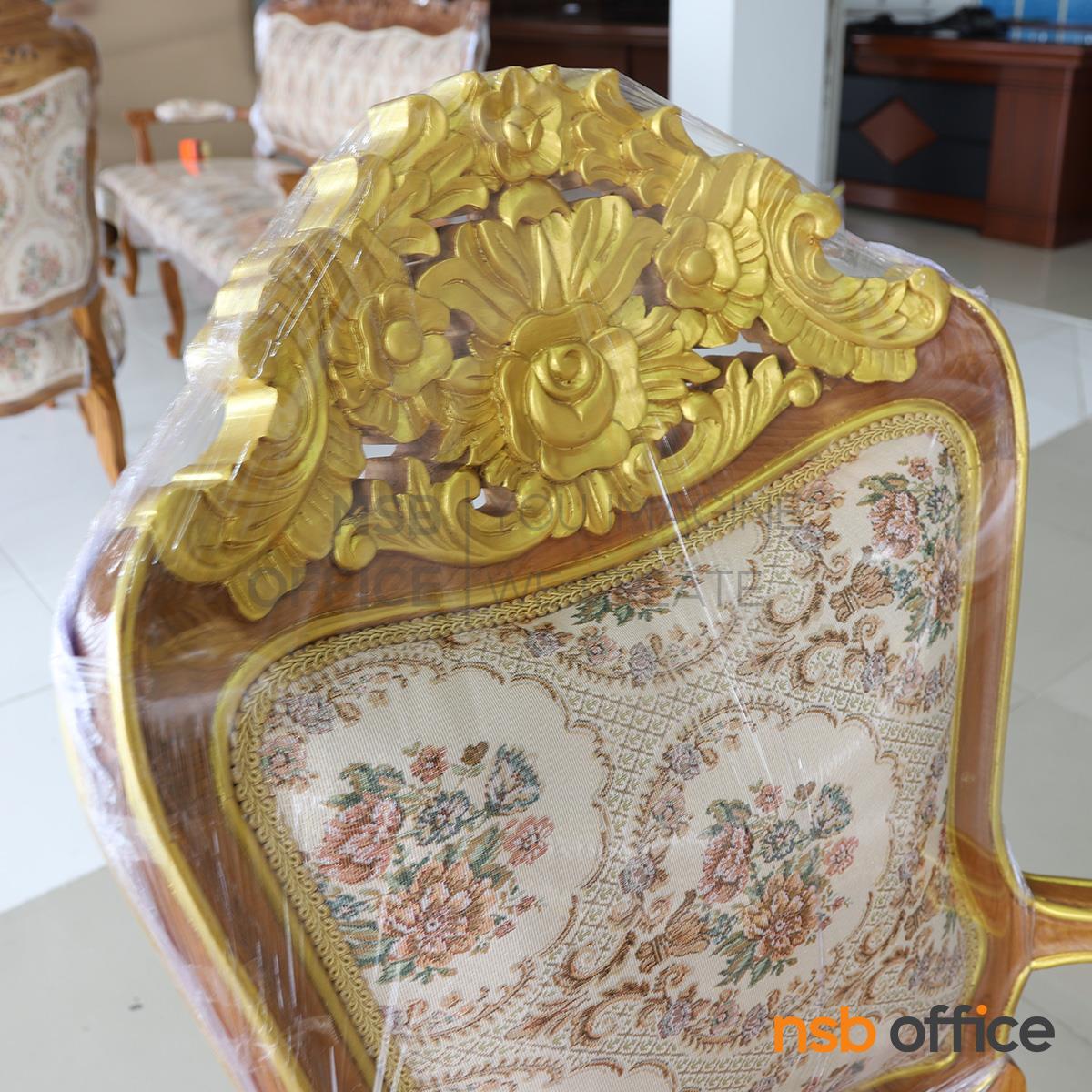 B31A036: ชุดโซฟาหลุยส์ดอกเบญจมาศ รุ่น แต้มลายสีทอง โครงไม้สักแท้