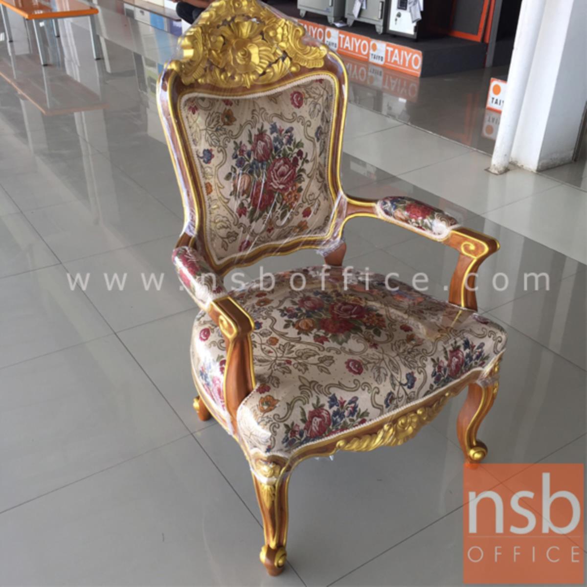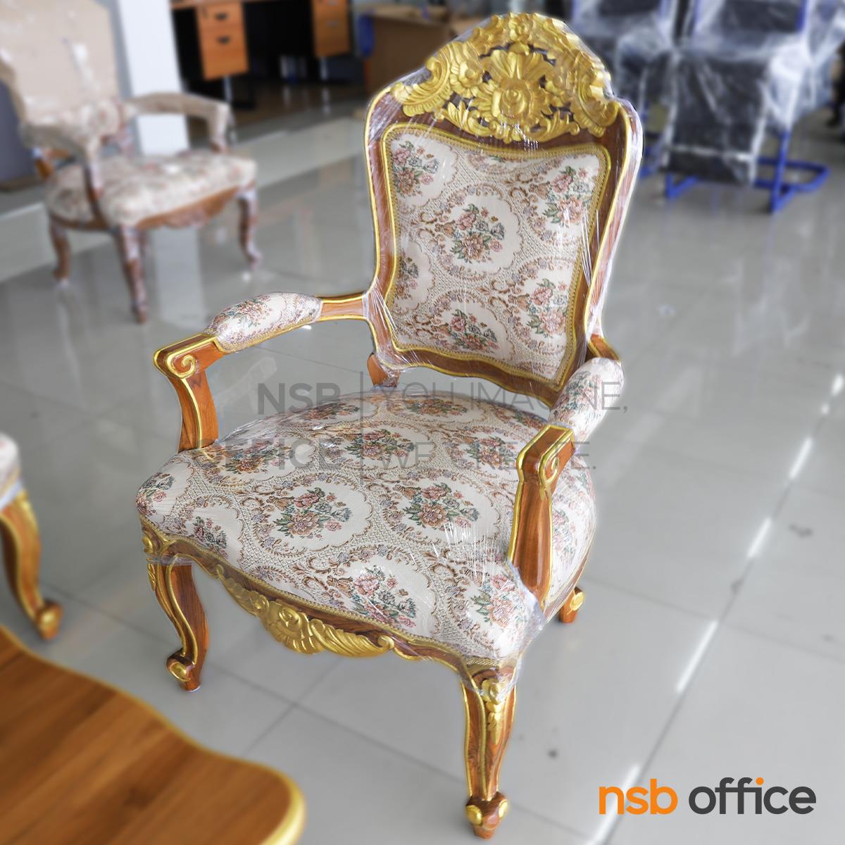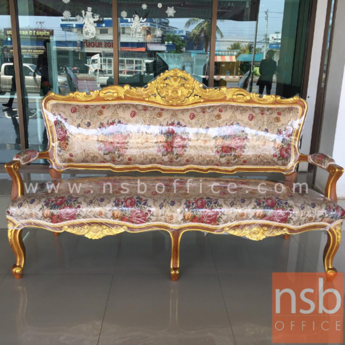 B31A036: ชุดโซฟาหลุยส์ดอกเบญจมาศ รุ่น แต้มลายสีทอง โครงไม้สักแท้