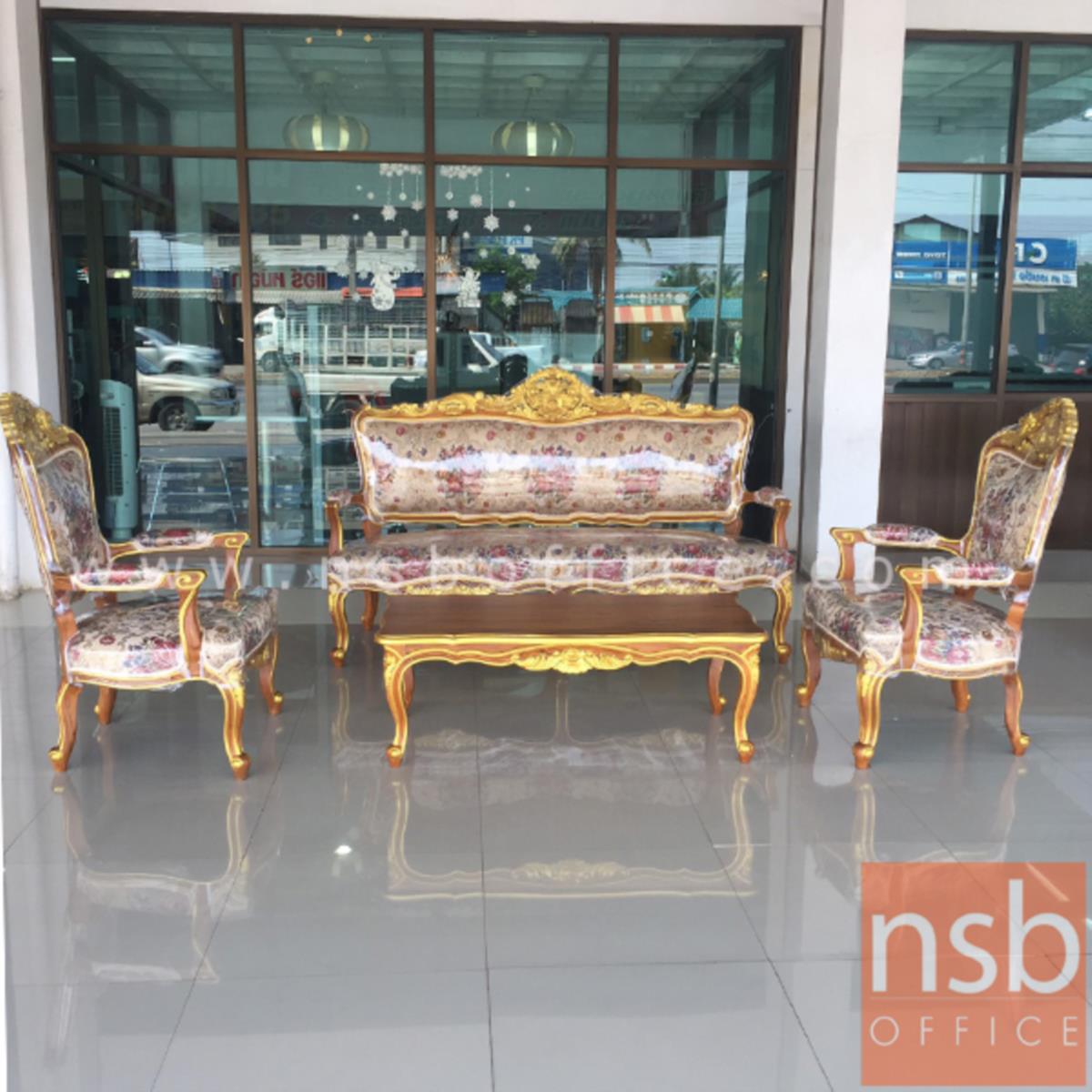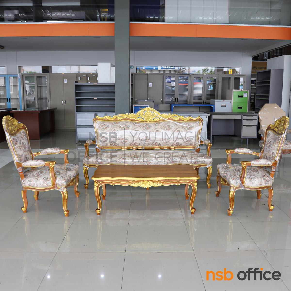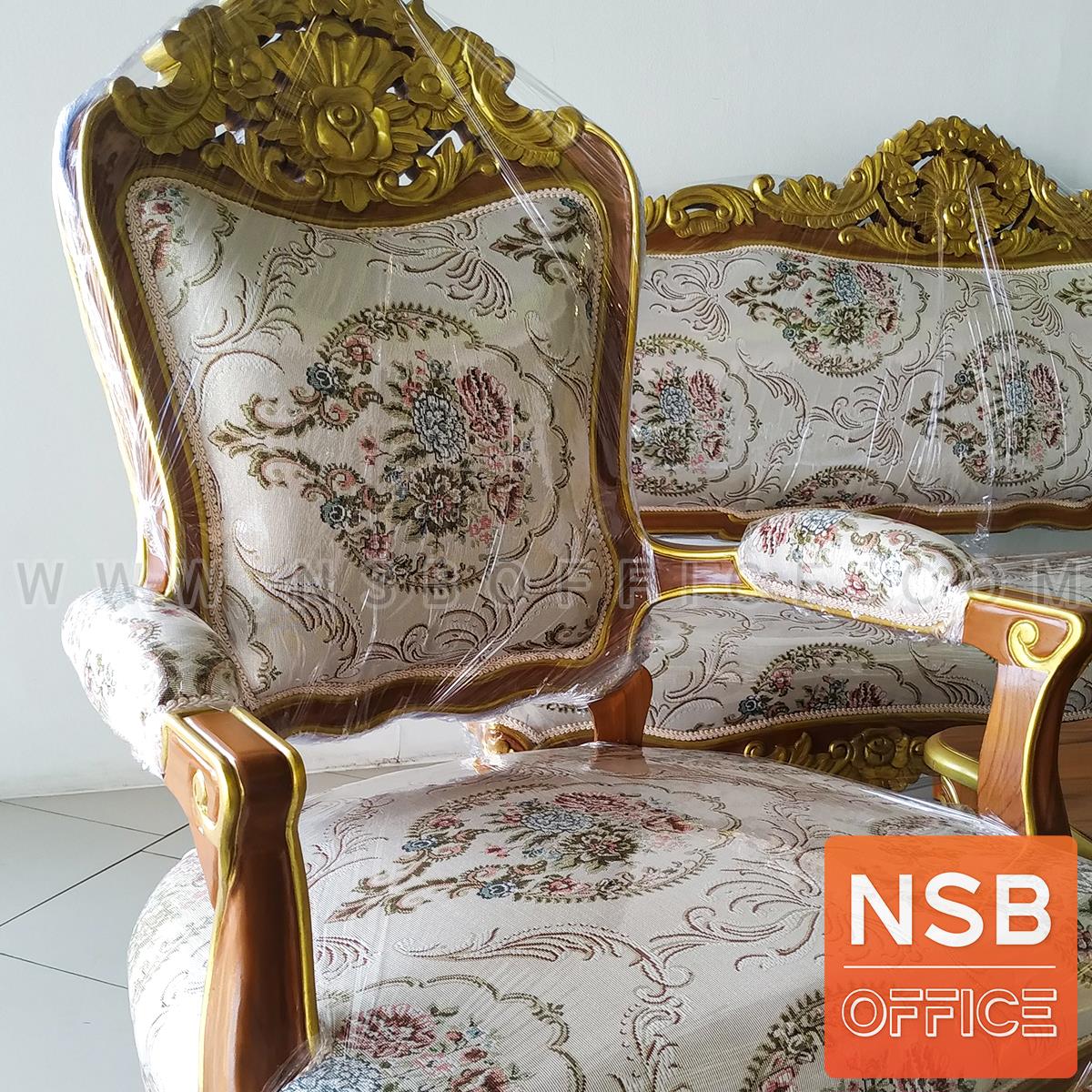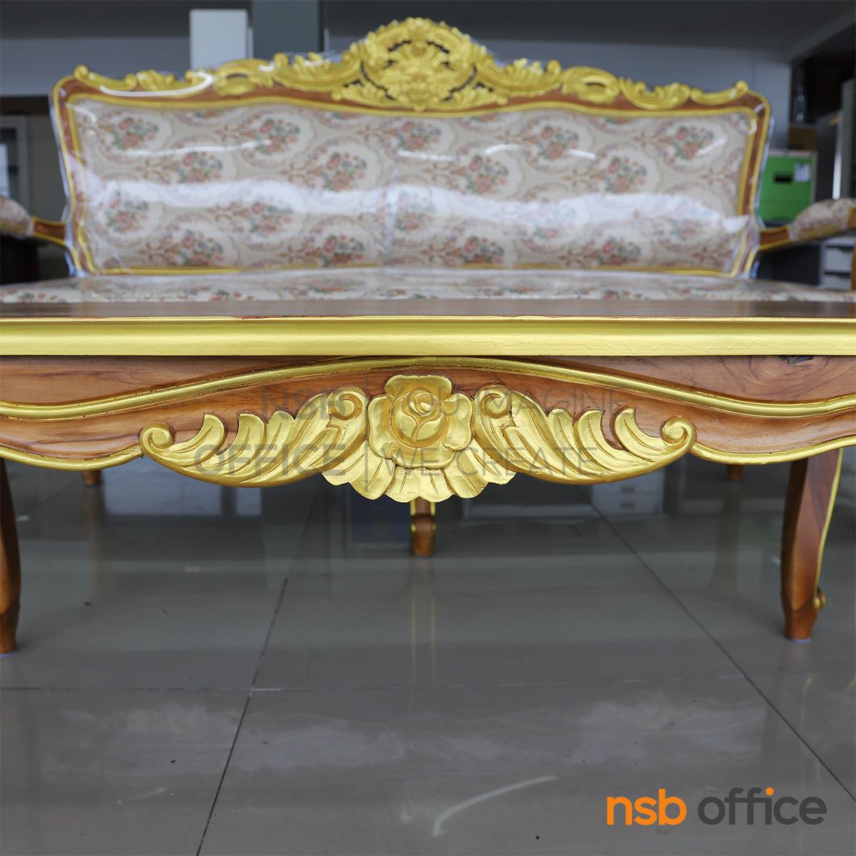 : ชุดโซฟาหลุยส์ดอกเบญจมาศ รุ่น แต้มลายสีทอง โครงไม้สักแท้