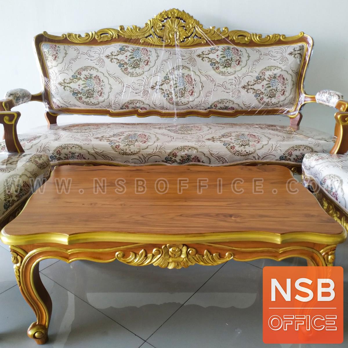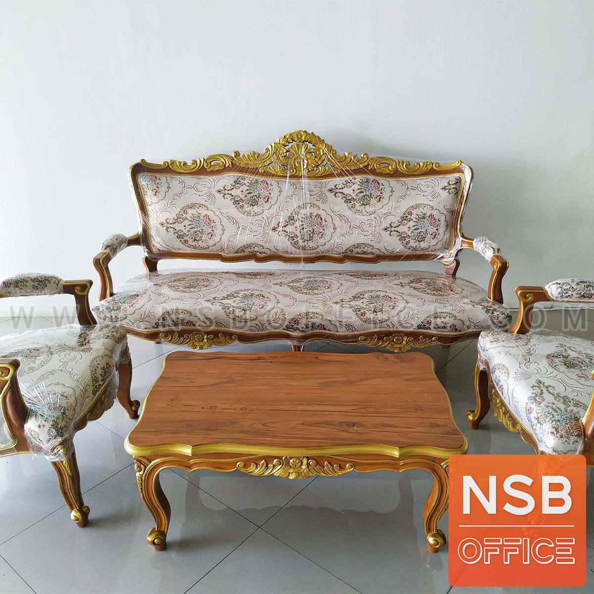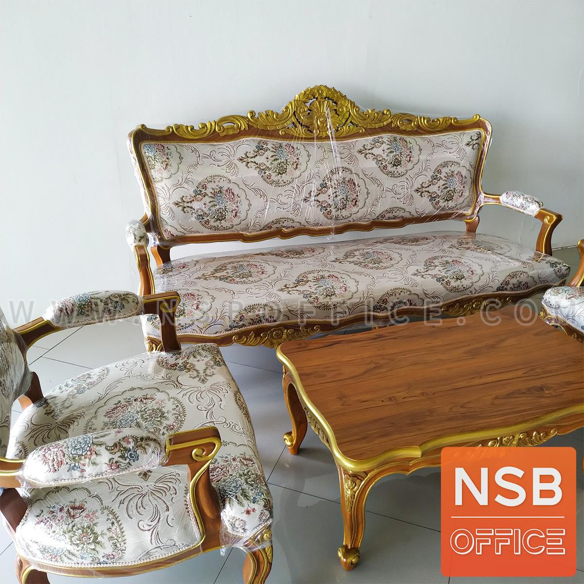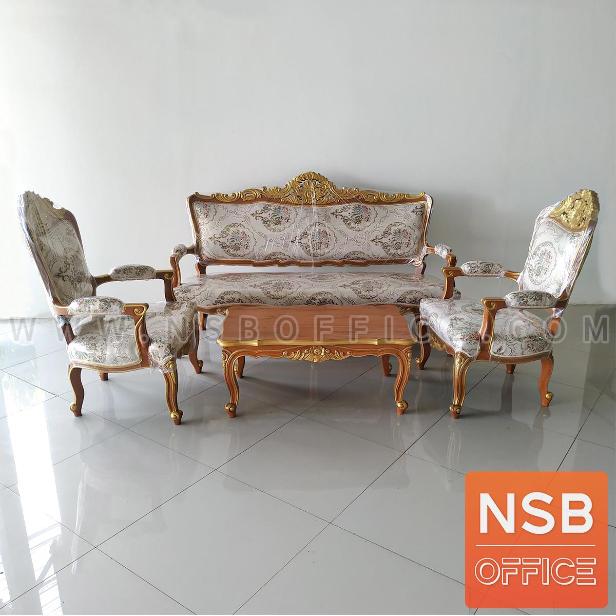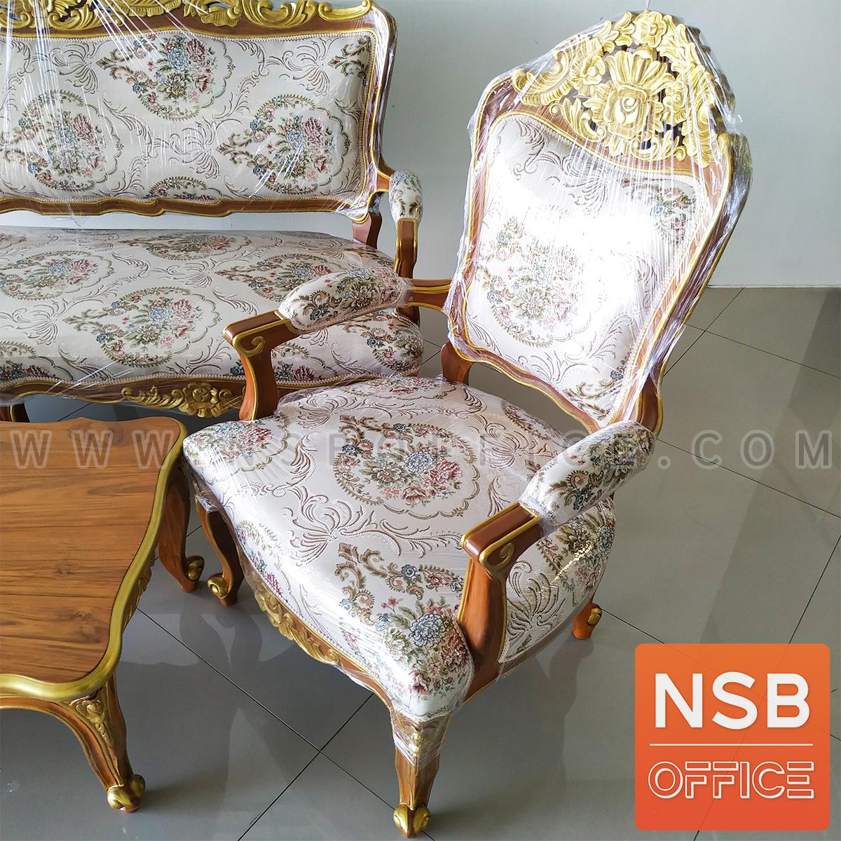 : ชุดโซฟาหลุยส์ดอกเบญจมาศ รุ่น แต้มลายสีทอง โครงไม้สักแท้