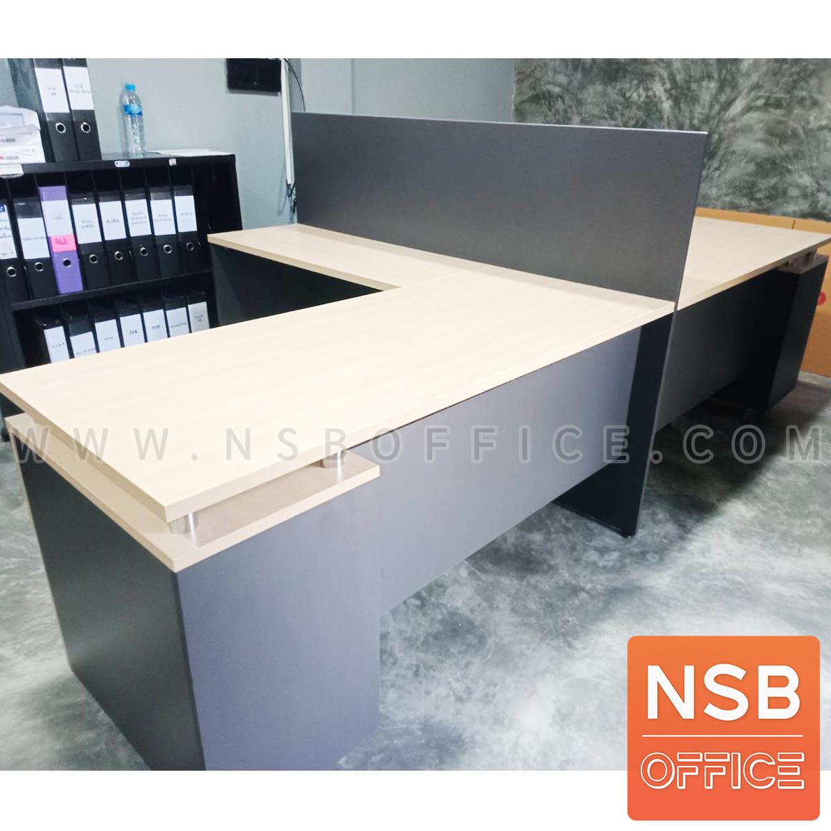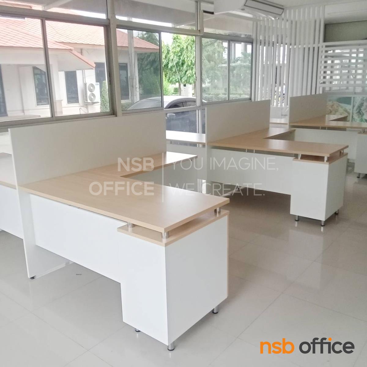 A27A033: ชุดโต๊ะทำงานกลุ่มตัวแอล 2 ที่นั่ง รุ่น MN-TYW2832 ขนาด 282W ,322W cm. พร้อมไม้กั้นระหว่างโต๊ะ