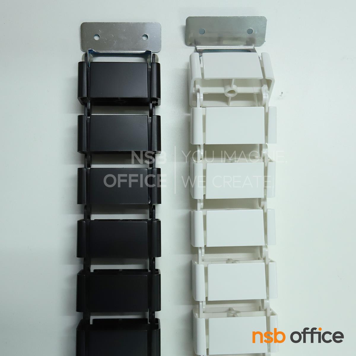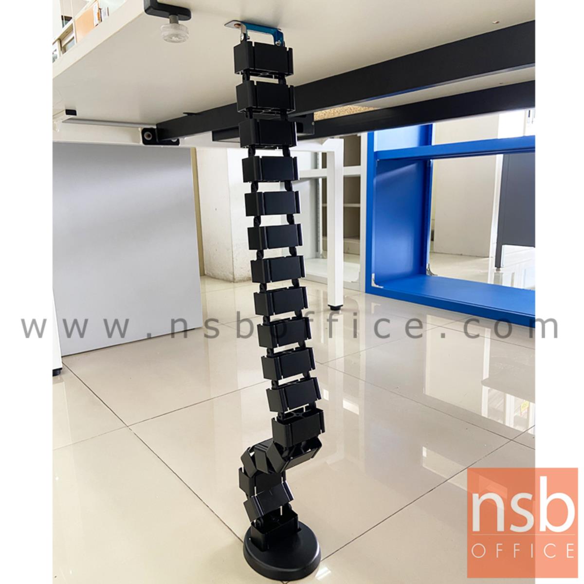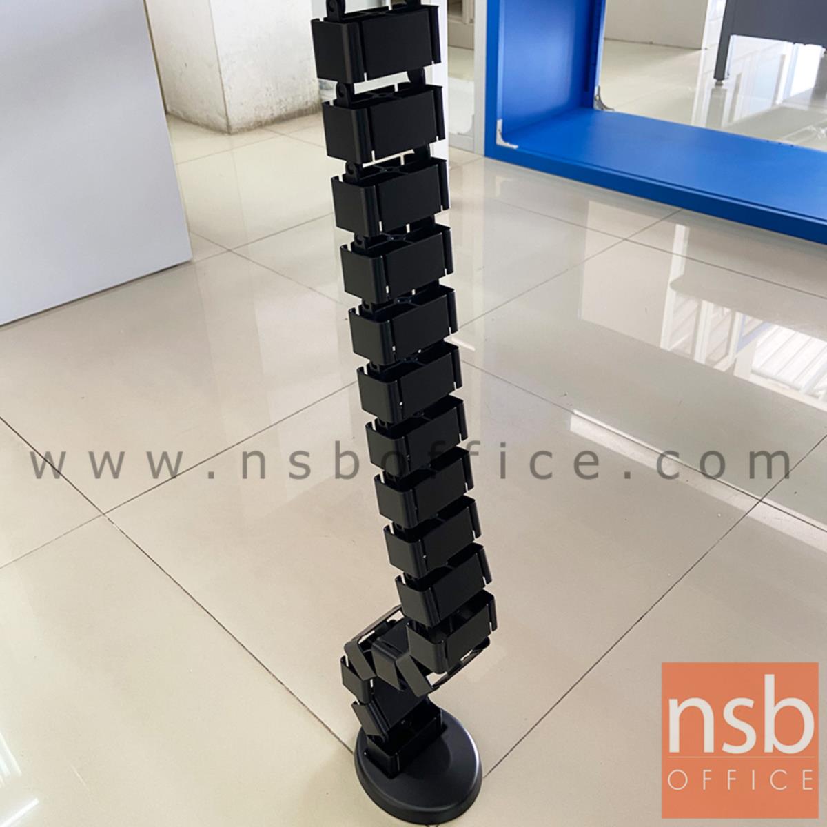 รูปทรงท่อเหลี่ยม ช่องจัดเก็บแบ่งสายได้เป็นระเบียบ ใช้ติดตั้งระหว่างหน้าโต๊ะกับพื้นห้อง แผ่นเพลทยึดพื้นผลิตจากเหล็ก