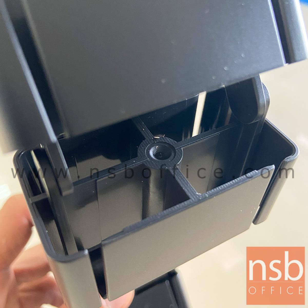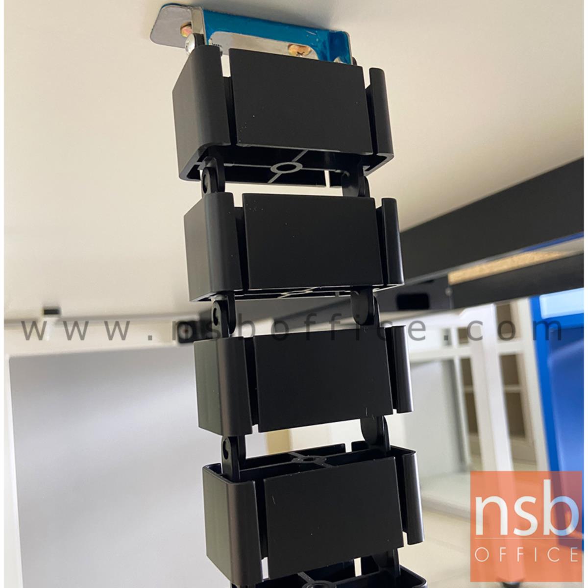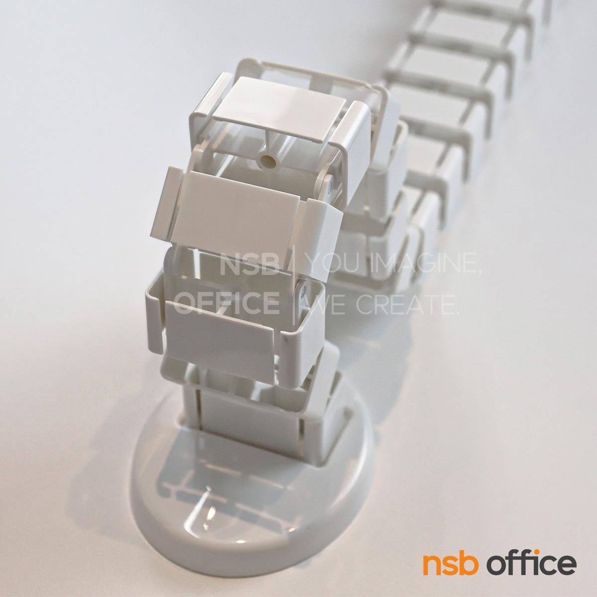 รูปทรงท่อเหลี่ยม ช่องจัดเก็บแบ่งสายได้เป็นระเบียบ ใช้ติดตั้งระหว่างหน้าโต๊ะกับพื้นห้อง แผ่นเพลทยึดพื้นผลิตจากเหล็ก