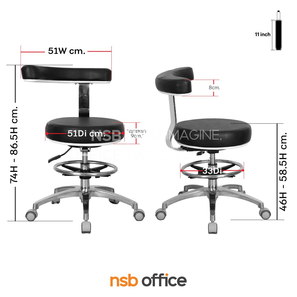 : เก้าอี้คุณหมอเบาะ PU foam พนักพิงหมุนได้รอบที่นั่ง รุ่น Imbruglia (อิมบรูเลีย) ขาอลูมิเนียม ลูกล้อเก็บเสียง