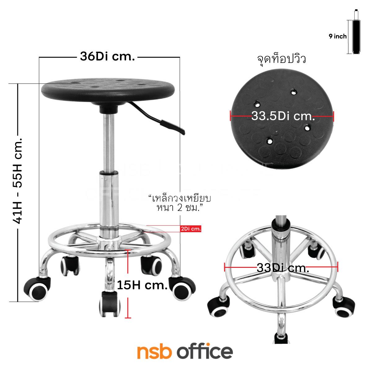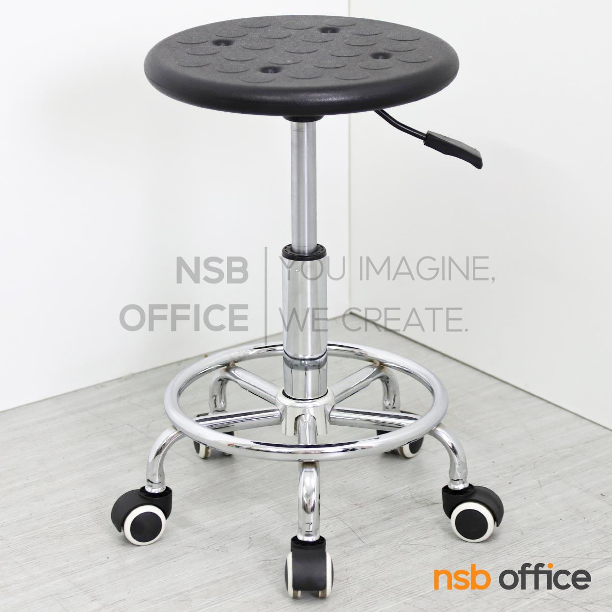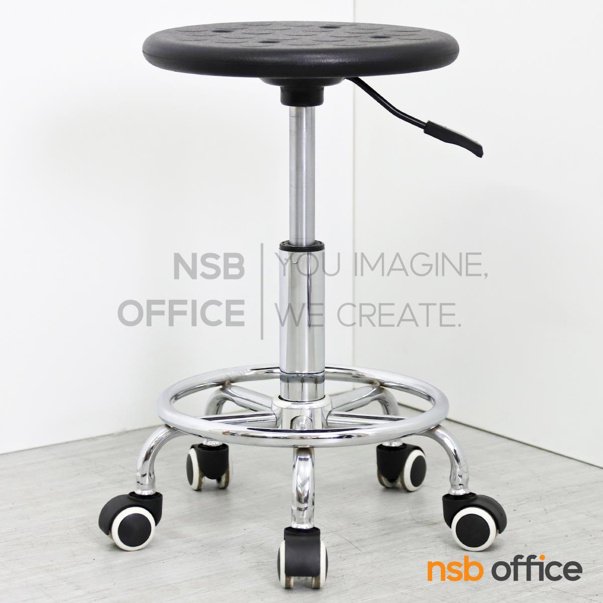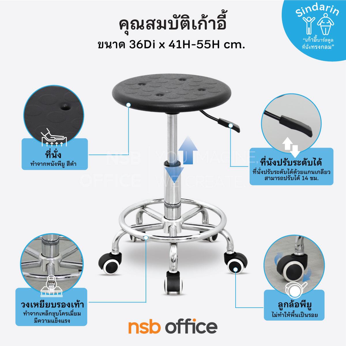 : เก้าอี้บาร์กลมสตูลที่นั่งกลม PU ล้อเลื่อน รุ่น Sindarin (ซินดาริน) ESD ป้องกันไฟฟ้าสถิต ขาเหล็กชุบโครเมี่ยม