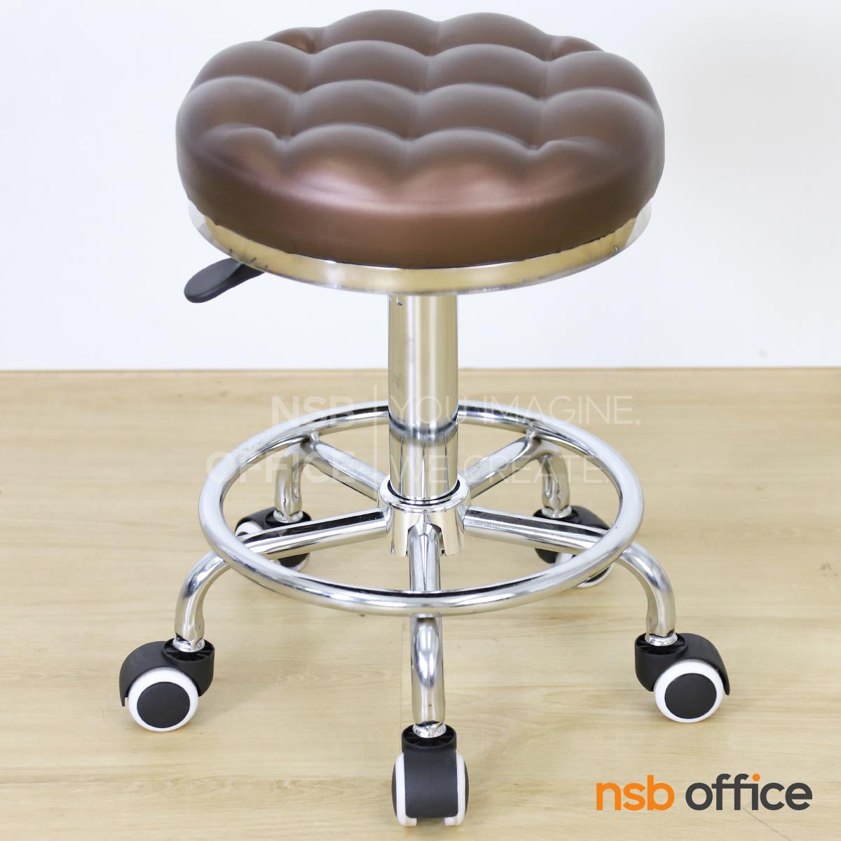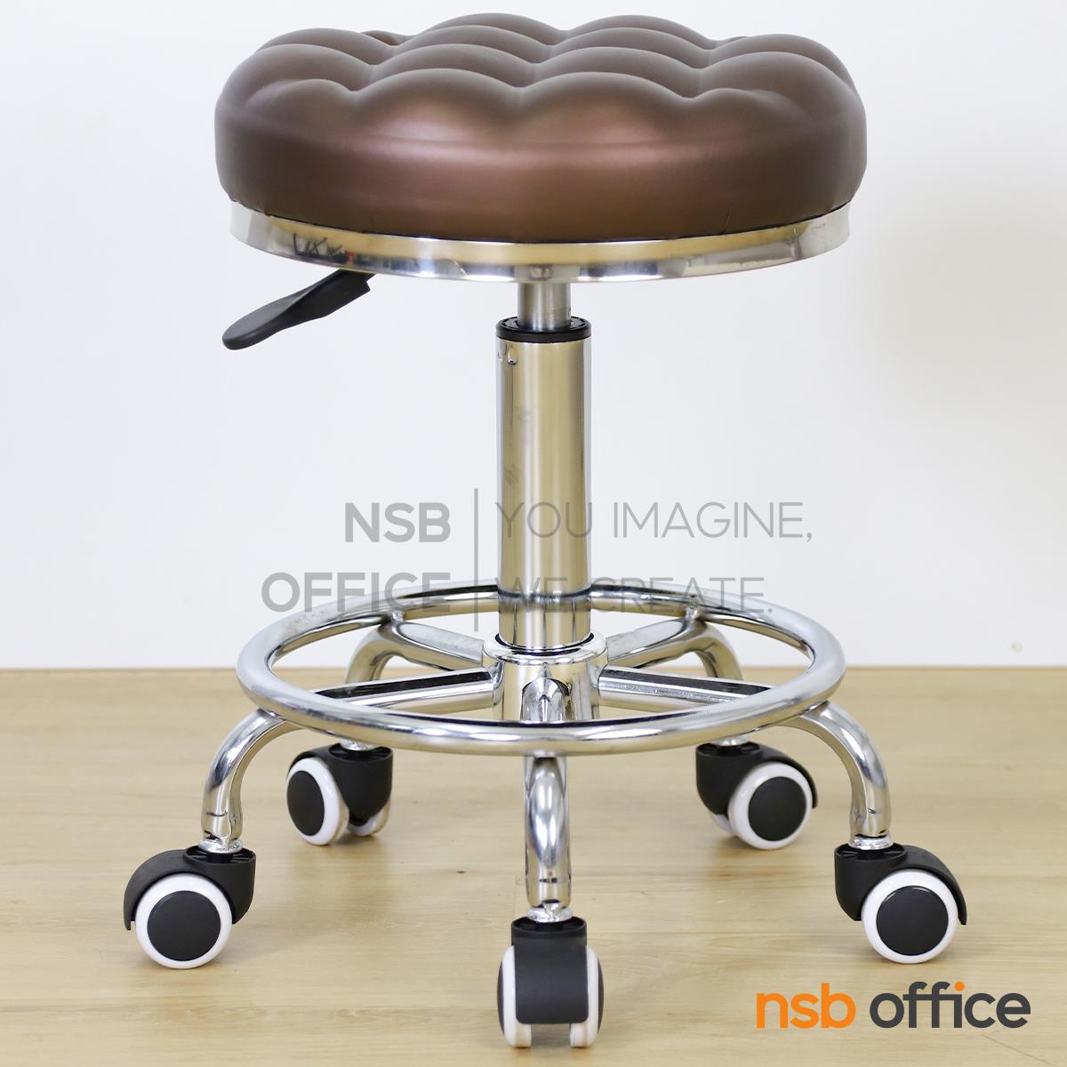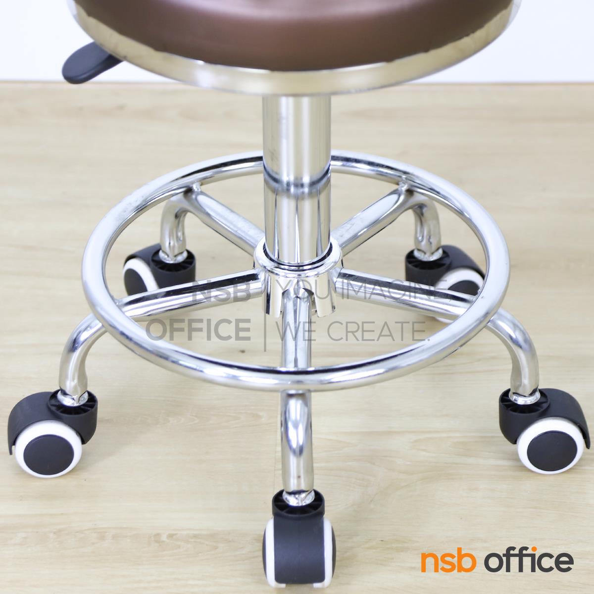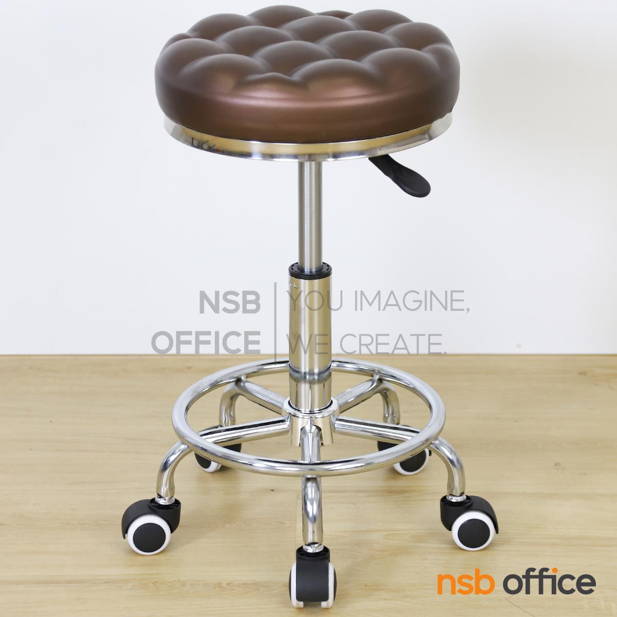 B02A078: เก้าอี้บาร์สตูลที่นั่งกลมล้อเลื่อน รุ่น Caspian (แคสเปียน) โช๊คแก๊ส ขาเหล็กชุบโครเมี่ยม